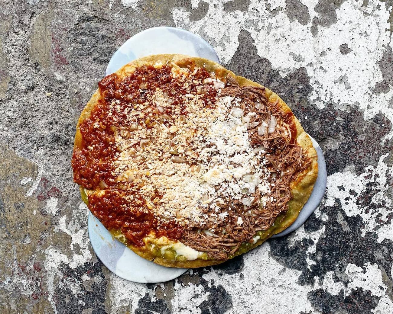 Aunque ahora encontremos muchos de estos platillos en menús de restaurantes contemporáneos, siempre recordaremos que comenzaron como un almuerzo obrero. Así es como en algún puesto callejero por la antigua Refinería de Azcapotzalco nacieron las petroleras. Se trata de un antojito de la cocina mexicana conformado por una gran base de maíz —gruesa y resistente— rellena de frijoles y pasada por un baño de manteca. Luego se le extiende una capa de salsa, cebolla, queso y el guisado, ya sea bistec, costilla o longaniza. No es un huarache ni un sope, las petroleras se distinguen por una textura inconfundible que asemeja una tortilla de maíz gigante.