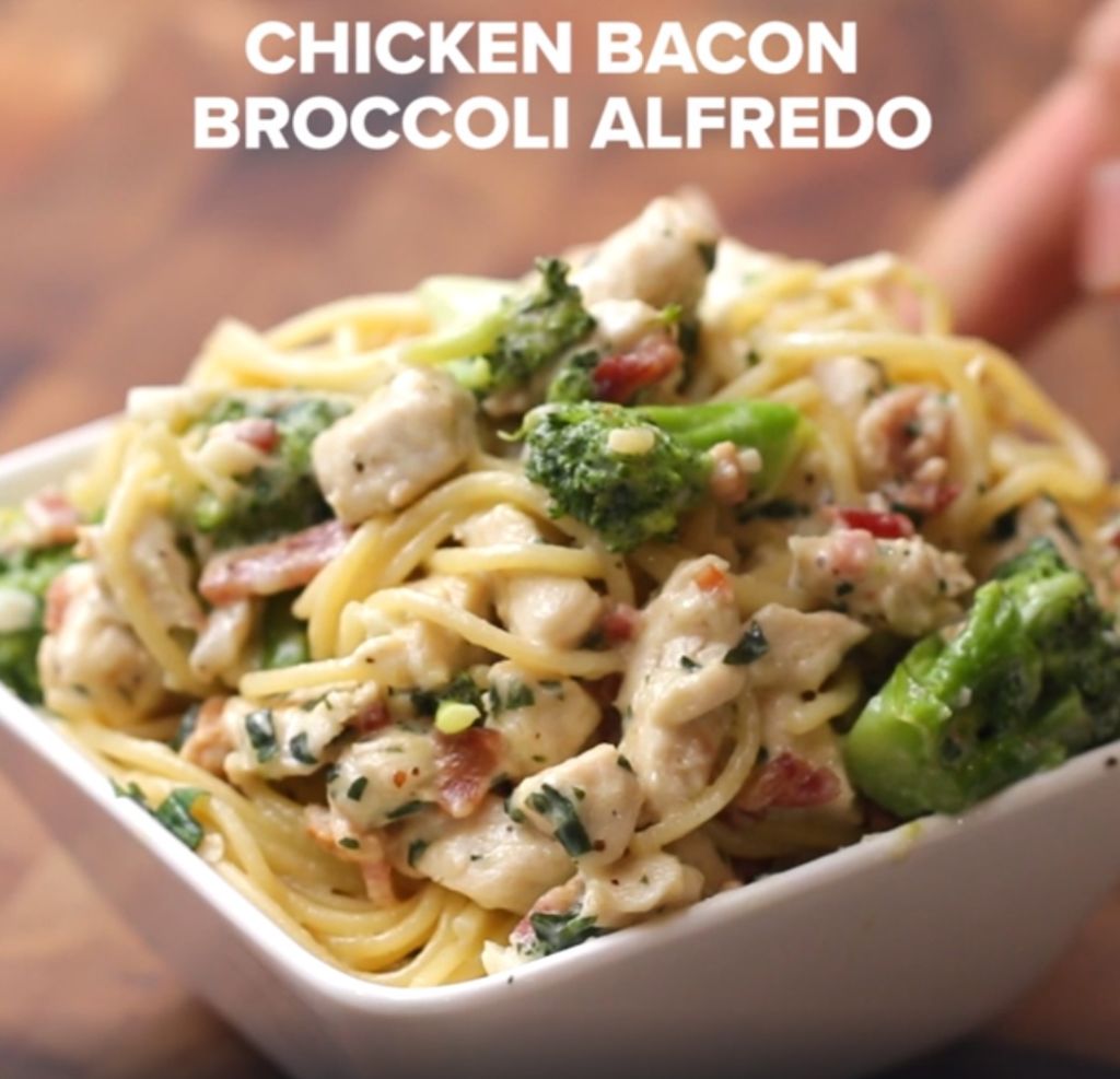 En una olla con aceite cocina las pechugas de pollo en trocitos y agrega ½ cucharadita de sal y pimienta, los dientes de ajo, el broccoli, la leche, el parmesano, el perejil y tocino. Mezcla todo bien.