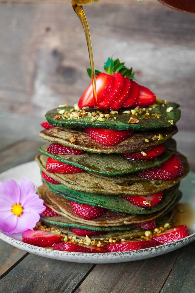 Mezcla la leche, harina, té matcha, azúcar, sal y polvo de hornear. Bate las claras de huevo hasta que estén a punto de nieve, incorpóralas a la mezcla con ayuda de una espátula y movimientos envolventes. Para hacer cada pancake, vierte un poco de tu mezcla sobre un sartén caliente y cocina hasta que esté listo. Obtendrás entre seis y siete pancakes. Acompáñalos de tus toppings favoritos y disfruta.