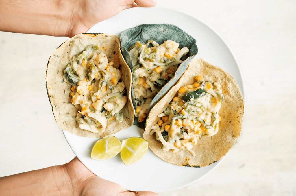Tacos de rajas con crema vegana