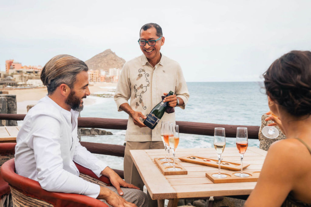 Waldorf Astoria Los Cabos Pedregal es uno de los hoteles más especiales al norte de México, un alojamiento característico por su lujo exclusivo y atmósfera de alta gama, así como por contar con maravillosas propuestas gastronómicas que destacan los ingredientes frescos de la región. Una de ellas es El Farallón, con mesas ubicadas justo sobre un acantilado, lo que permite tener una experiencia culinaria con algunas de las vistas más privilegiadas hacia el mar de Cortés.