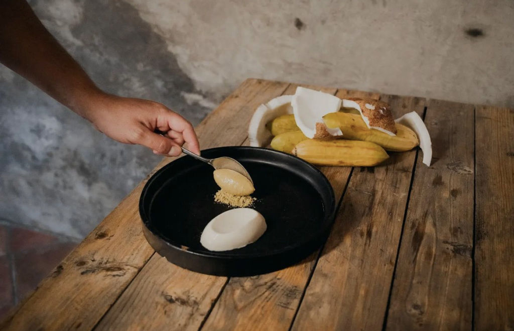 El menú se puede elegir al gusto o si eres más aventurero, puedes optar por el menú degustación de 12 tiempos. En VICA podrás conocer la historia de cada platillo a través de sus ingredientes y de las preparaciones que Vigorito hace enfocadas en las tradiciones locales. Un plato que mezcla sabores poco tradicionales de Atlixco es el conejo, un guiso de rosa de castilla, curcuma, camote amarillo y lavanda.
