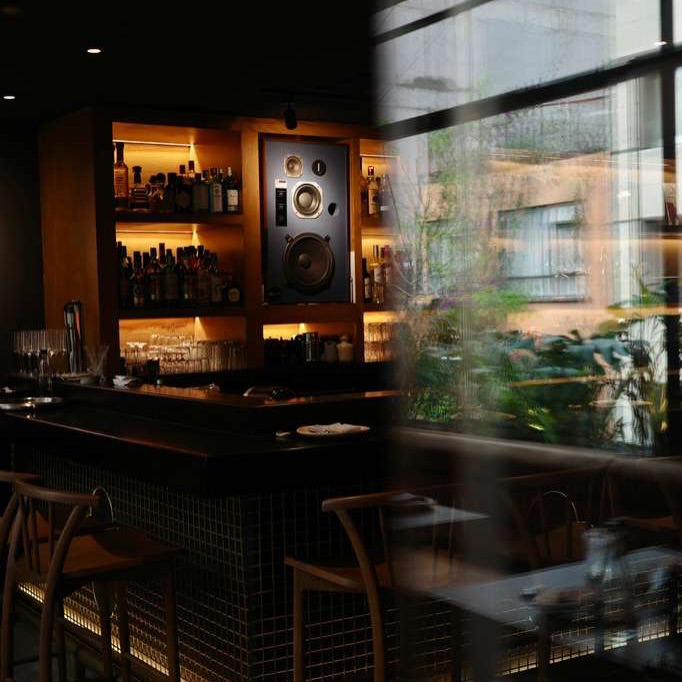 El espacio rinde homenaje a la música de forma muy clara: bocinas visibles, vinilos decorando la barra en donde portadas de clásicos de Luis Miguel, Michael Jackson y Juan Gabriel son los protagonistas, y una pieza de arte en madera por toda la pared del restaurante que simula ondas de sonido recorriendo el lugar.