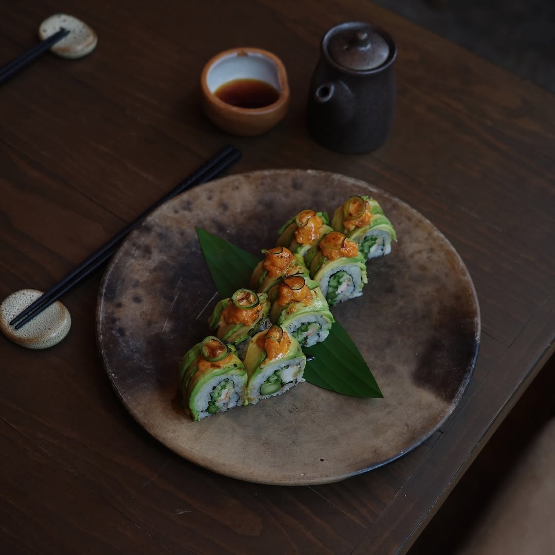 Uno de los favoritos llegó en forma de bao relleno de pollo frito, con una textura crujiente que contrastaba con el pan suave y esponjoso. Llegó recién salido de la freidora, todavía caliente, y es de esos platos que vale la pena pedir sí o sí. También probamos uno de sus rollos —vale la pena explorar opciones como el spicy tuna roll o el shrimp tempura roll— que mantienen ese balance entre técnica y frescura.