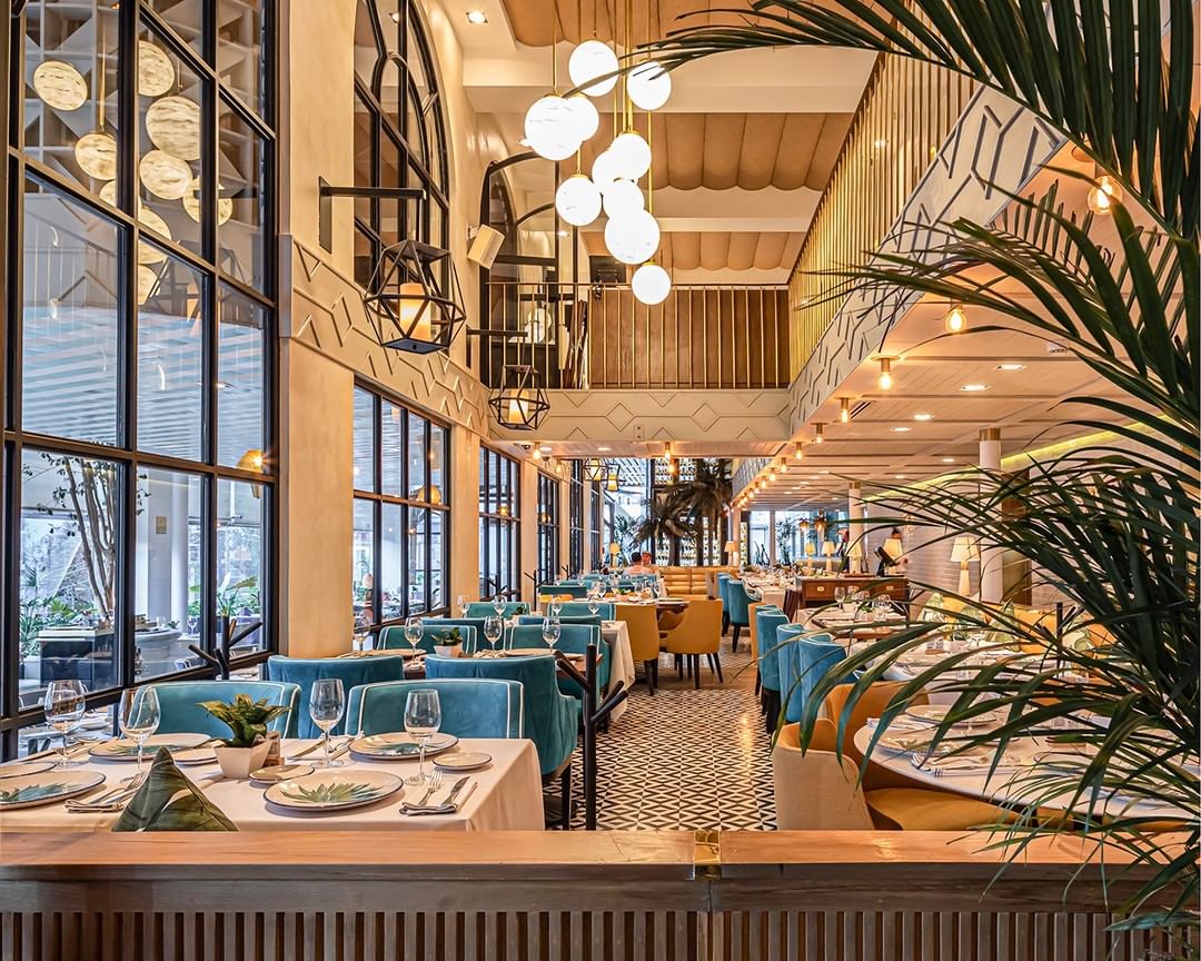 El lugar es un espectáculo en si mismo, con un diseño ecléctico en el que se aprecia una mezcla de estilos clásicos y modernos, así como una inspiración Art Déco que rememora las construcciones de Miami durante los años 50. Éste corrió a cargo de COUSI Interiorismo, y encuentra un balance perfecto entre elementos clásicos, modernos y mediterráneos, así como grandes ventanales donde entra la luz natural, pisos y techos decorados en un azul vibrante, y dos grandes barras desde donde se despachan sus bebidas.