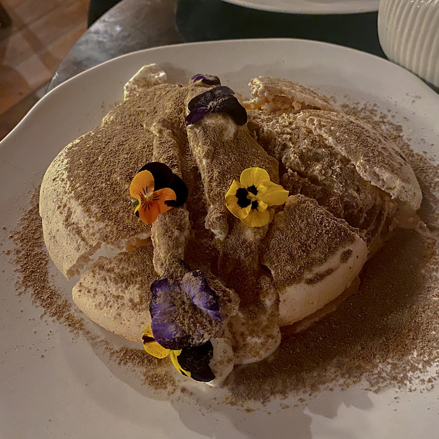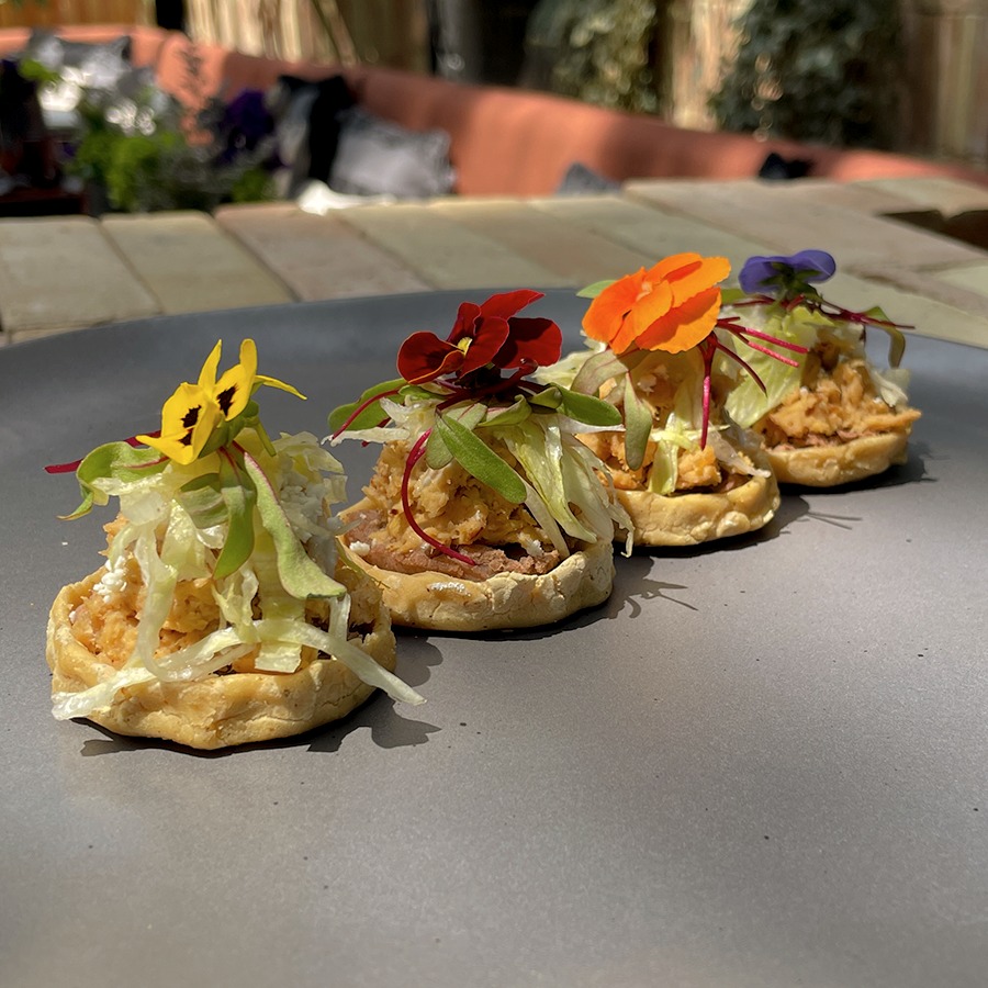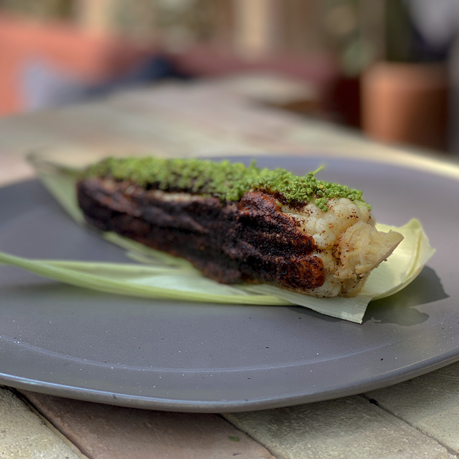 Para ‘comenzar’ la infladita de caviar azteca —que va rellena de escamoles a la mantequilla—, la tostada de aguachile pibil —con camarones en adobo pibil—, y el tiradito de salmón rosa son imperdibles. De postre puedes optar por el merengue de tortilla con crema de vainilla de Papantla; los tacos dorados de caramelo o las milhojas de maíz con mango.