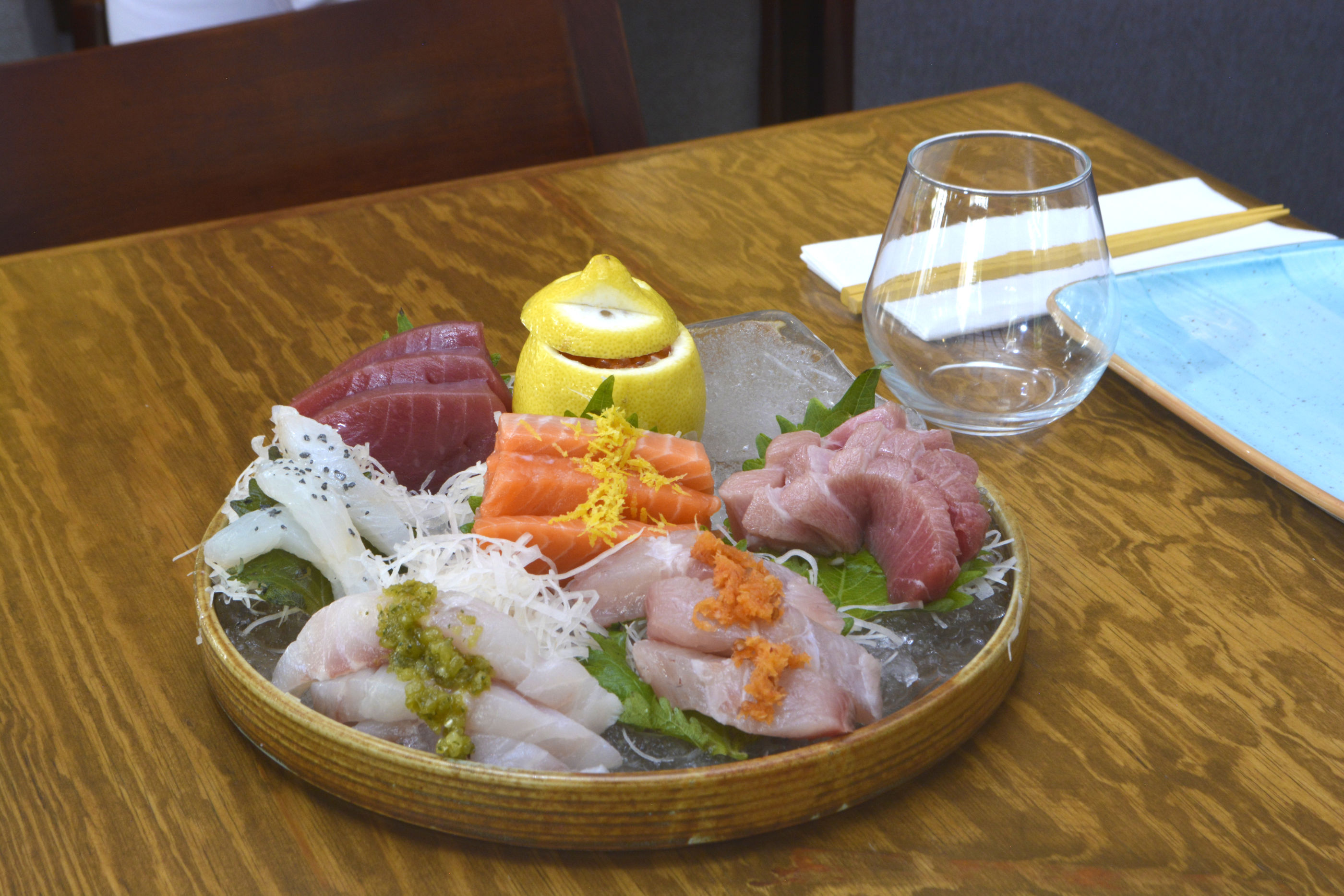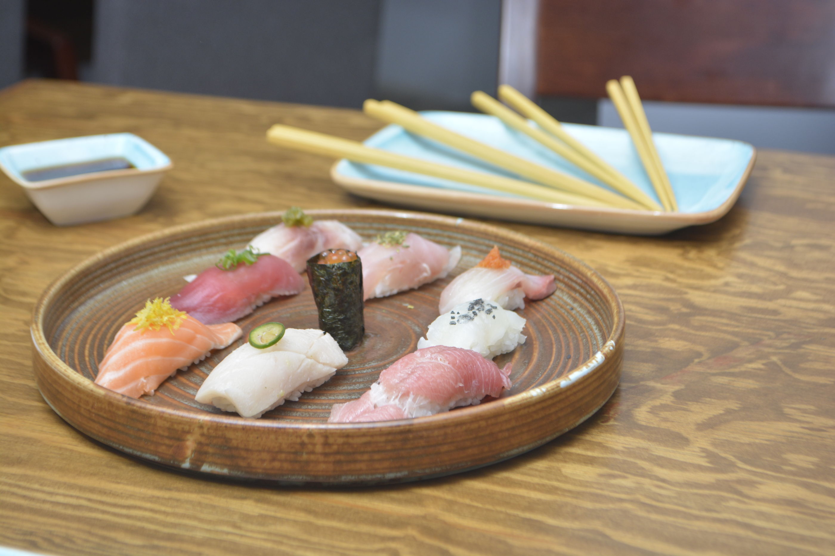 Podrás degustar nigiris de king salmon, atún aleta azul o de almeja chocolata, si lo que buscas es una cena ligera. Si optas por un maki (rollo) tienen una excelente oferta con combinaciones originales como el spicy yellow tail que tiene hamachi, pepino crujiente, aguacate y cebollín por dentro, con ajonjolí y salsa dinamita, uno de sus mejores secretos. Si lo que deseas un plato para compartir y probar diferentes pescados, el sashimi sampler es perfecto para ti.