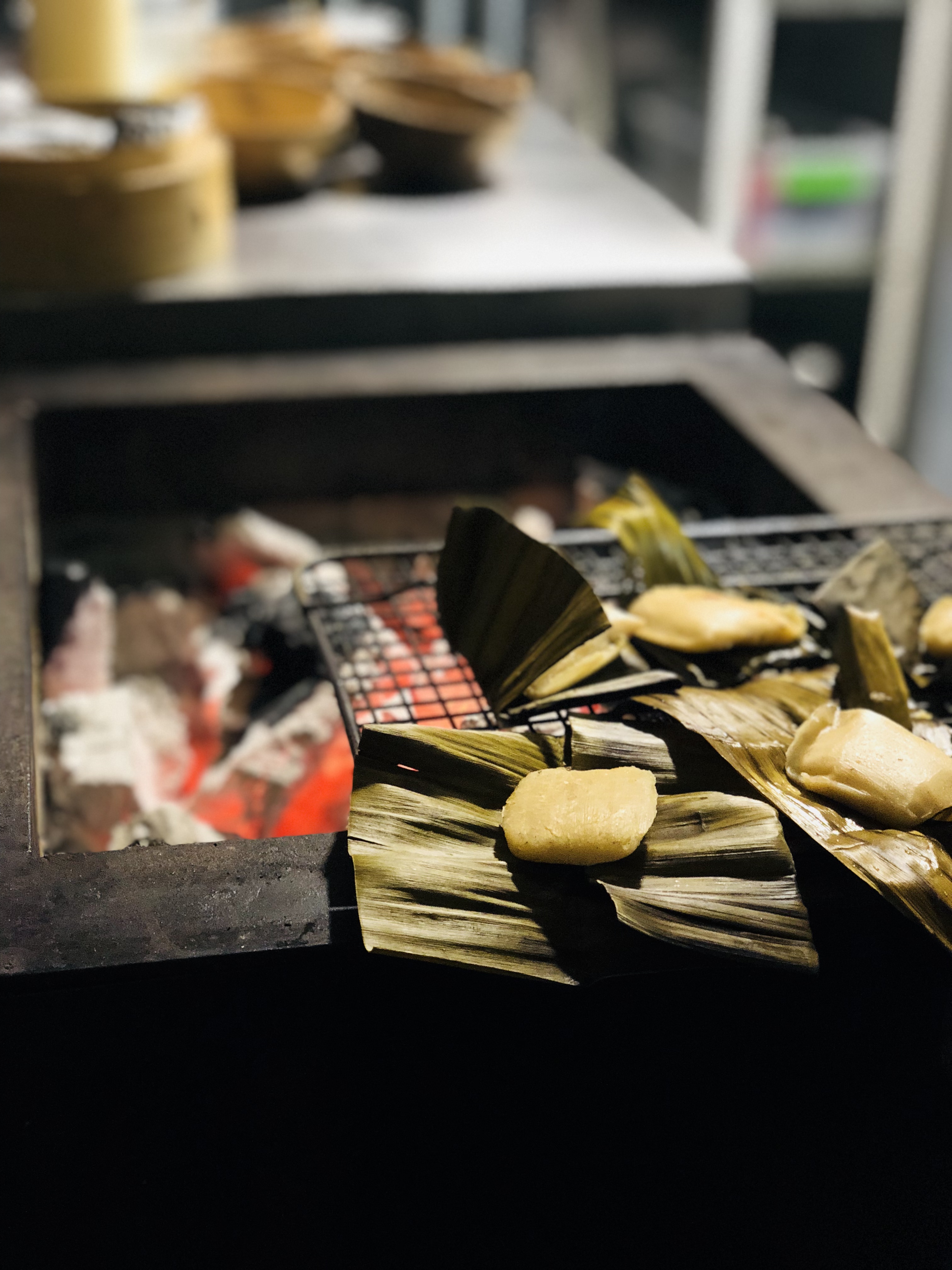 Posteriormente, subimos a la planta superior para conocer al maravilloso equipo encargado de hacer de cada comida en Nudo Negro toda una experiencia. Nos sorprendió la organización y el trabajo en equipo ejecutado a la perfección dentro de la cocina. Al frente, observamos cómo preparaban a las brasas unos pequeños tamales rellenos de calabacitas, que al poco tiempo fueron montados sobre una cama de mole de Oaxaca y se acompañaron con hoja santa, queso fresco y crema de rancho. ¿Nuestra opinión? Un pequeño pero gran homenaje de sabor a la cocina mexicana.
