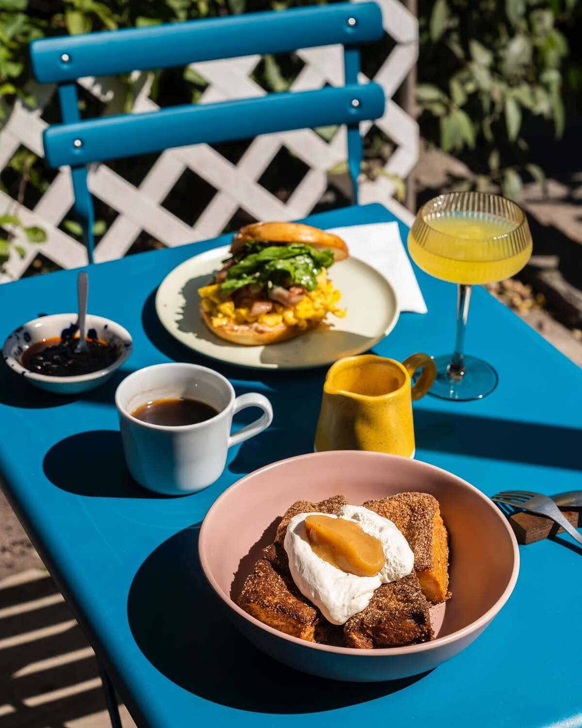Los fines de semana abren un poco más temprano, y sin duda te recomendamos llegar para el brunch. Entre los favoritos destacan el Breakfast Sandwich —relleno de huevo revuelto, queso cheddar, tocino y mayonesa de kimchi— y el Pan Francés —una rebanada gruesa de pan servida con crema de queso crema y limón eureka, y compota de temporada—. A esta hora también puedes probar los Spring Rolls y la Poptart, así que no te perderás de algunos de los mejores sabores del menú de la tarde.