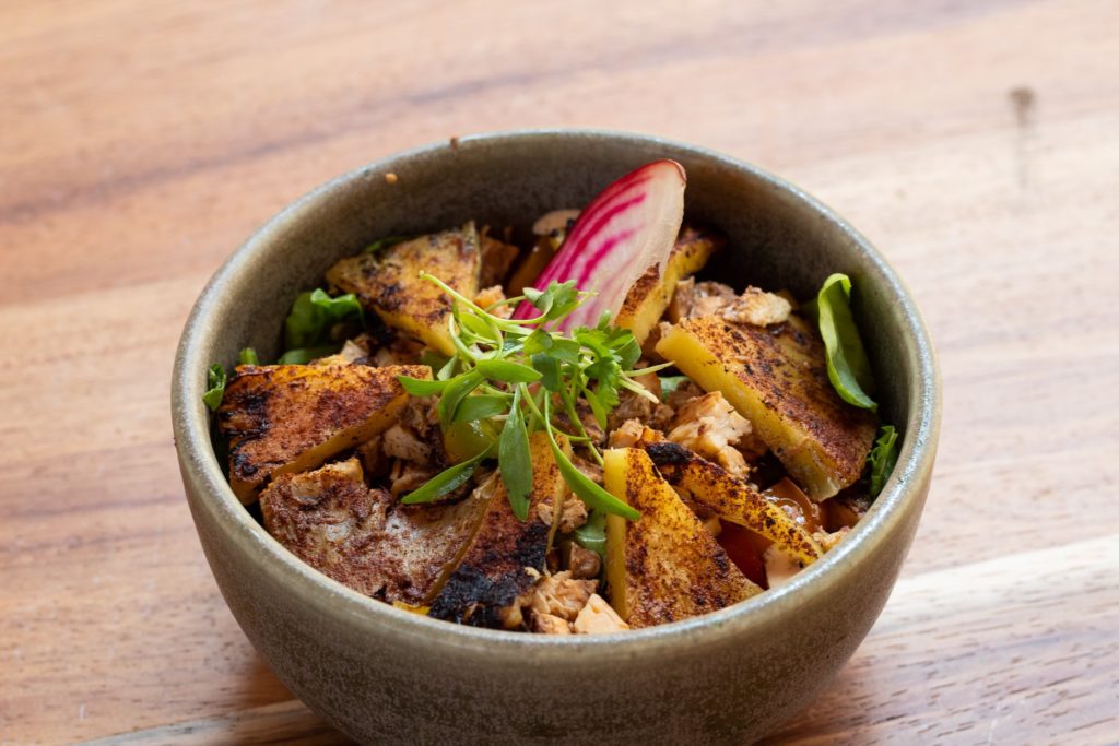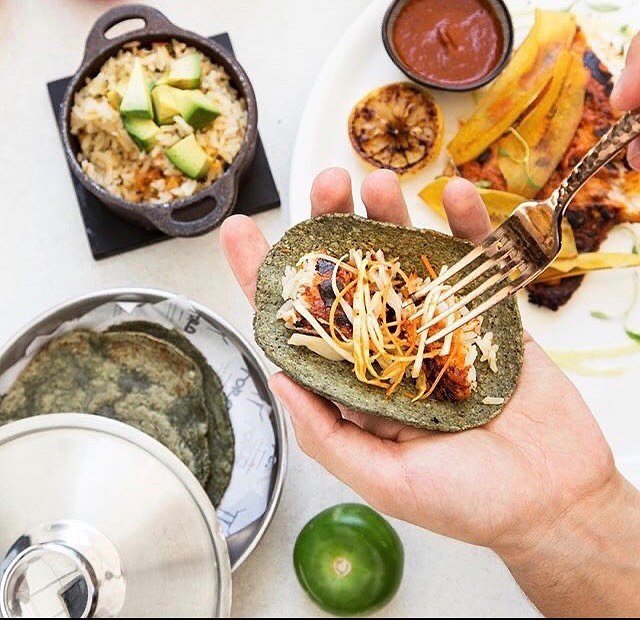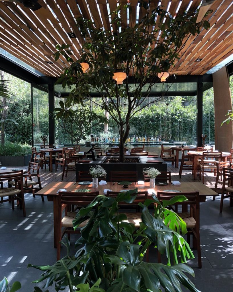 El lugar en sí una verdadera obra de arte, con hermosos detalles de diseño interior y una terraza para morir de amor. Podríamos pasarnos el día entero describiendo sus impresionantes instalaciones, en donde hermosos árboles, terrazas, ventanales y plantas contrastan con materiales como piedra, madera, detalles decorativos muy mexicanos y acentos contemporáneos que mezclan tradición con actualidad. A través de la cocina de la Chef Lula Martín del Campo, encontrarás delicias como unos esquites elaborados con maíz rojo y azul –especies criollas de Pátzcuaro, Michoacán– y maíz blanco de Chalco, Estado de México. Sus ‘Tacos caramelo de pulpo’ con tortilla de harina de Sonora, pulpo, queso asadero y aguacate son una delicia digna de aplausos.