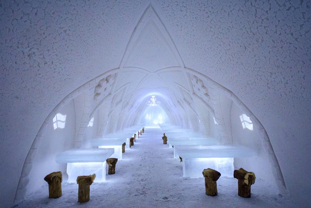 Dentro de este hotel en forma de castillo en Kemi, Finlandia, se encuentra este restaurante hecho completamente de hielo. Para entrar te dan abrigos como de esquimal para que puedas soportar el frío, y las bebidas te ayudan a mantener el calor. Lo pulcro y blanco de la nieve hacen que este sitio luzca majestuoso.