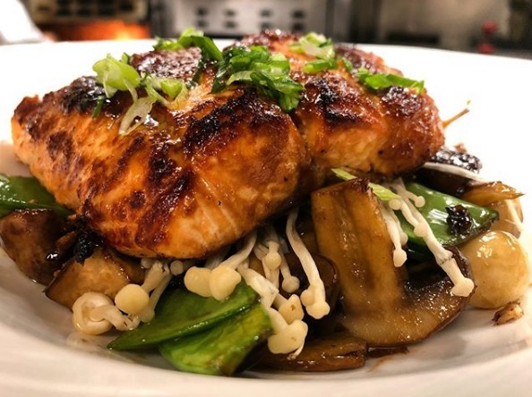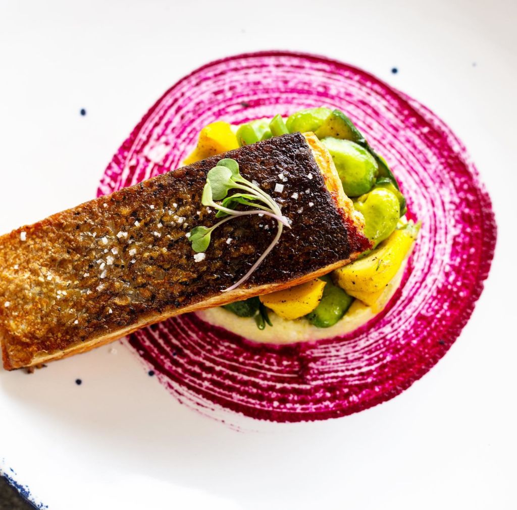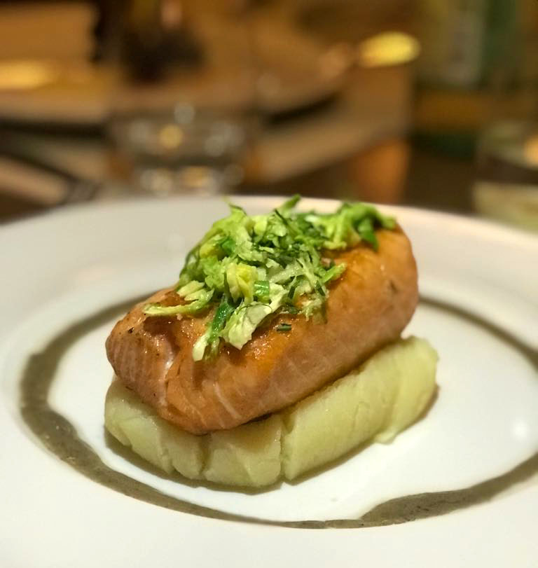 Su salmón a cocción lenta servido sobre puré de papa y acompañado con una vinagreta de trufa negra es una verdadera joya para los «salmón-adictos». Su textura es suave y sus sazón perfecto es solo el comienzo, pues en seguida se percibe que los ingredientes con los que lo preparan son frescos y de la más alta calidad.