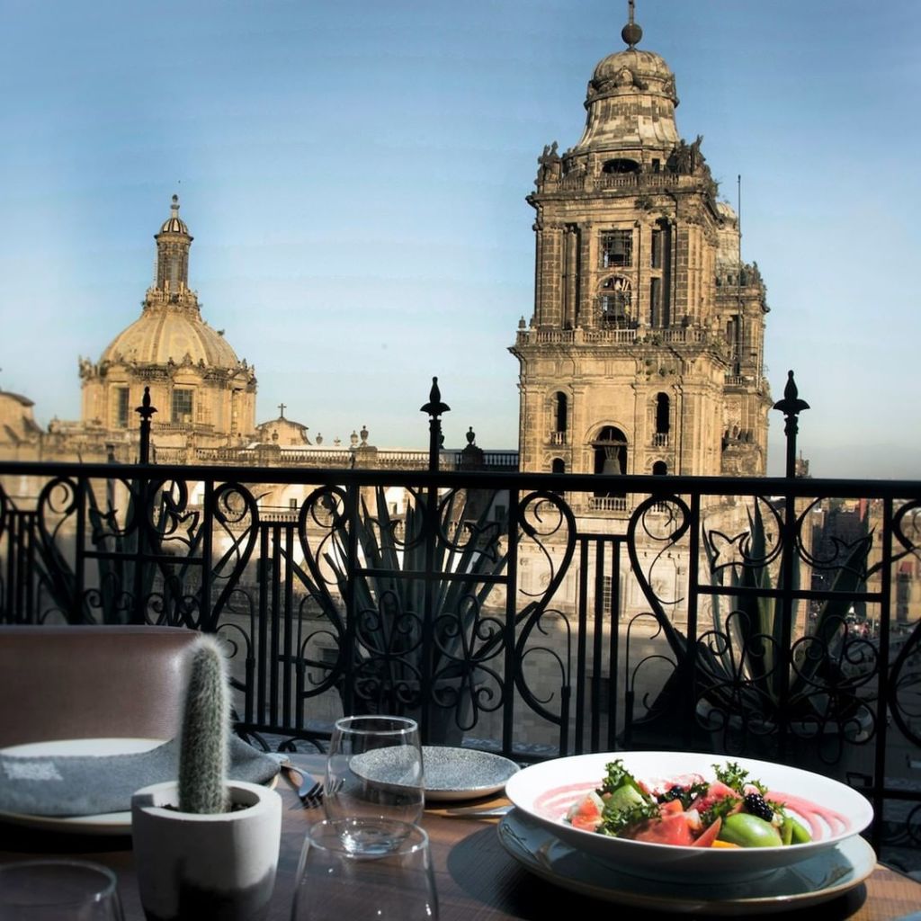Uno de los restaurantes con terraza más bellos de la ciudad, sin duda, es el Balcón del Zócalo. Este espacio cuenta con una pequeña sala de estar, una barra abierta y su increíble salón principal con vista al Zócalo de la Ciudad de México. Este lugar tiene una propuesta culinaria de cocina mexicana de autor liderada por el chef Pepe Salinas. En la parte de coctelería este lugar destaca por el uso de ingredientes endémicos y licores artesanales.