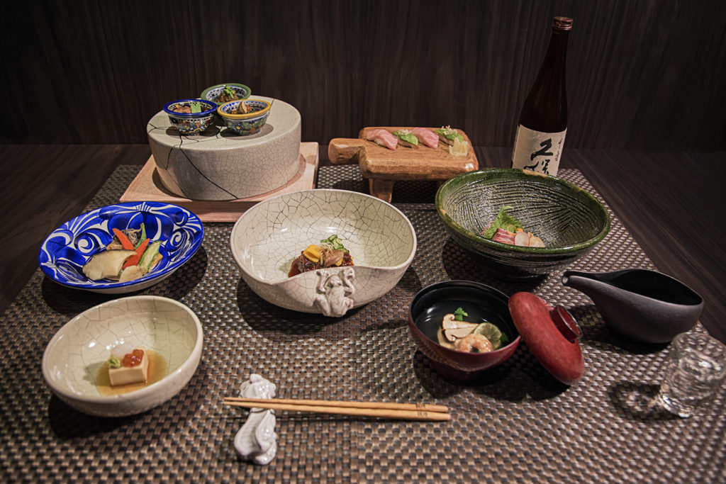 Un restaurante muy exclusivo pues solo 14 comensales –ocho lugares en barra y seis en mesas regulares– pueden comer ahí al mismo tiempo. La mayoría de la gente elige barra ya que forma parte de la experiencia al estilo «omakase», la cual consiste en ver cómo el chef elabora cada platillo, el cual te va explicando conforme lo sirve. Ahí ofrecen tres menús preestablecidos, cada uno con diferente costo. La comida es tradicional japonesa estilo «kaiseki», misma que es considerada como «alta cocina» entre los japoneses. Su menú cambia mensualmente y también existe la posibilidad de pedir a la carta.