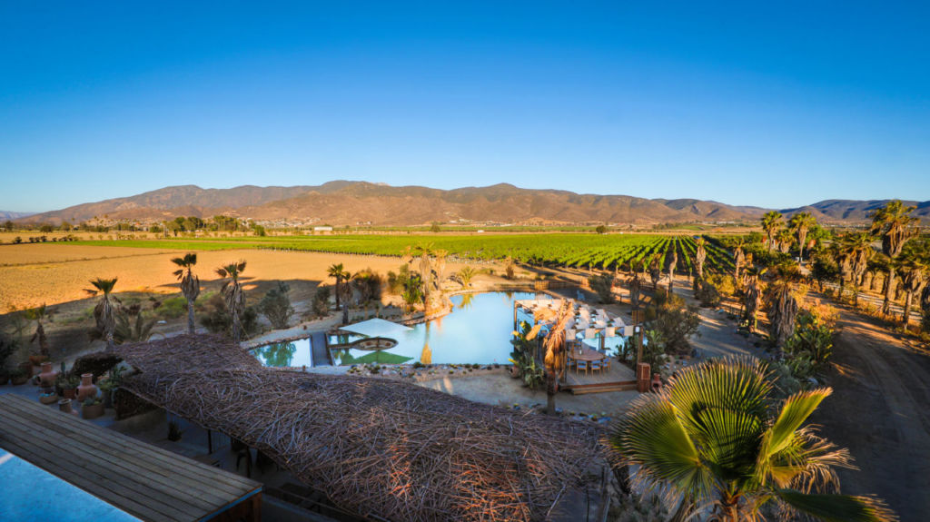 Salvaje es uno de los restaurantes dentro de viñedos en Baja que debes conocer con calma, disfrutar primero el recorrido por su bodega de vinos y finalizar con una comida que te llenará de experiencias únicas. Sus encantadores espacios como la mesa suspendida en el lago con fire pit, es ideal para una comida romántica o para festejar un aniversario; también cuentan con la mesa del chef y terrazas en desniveles con vista al lago.