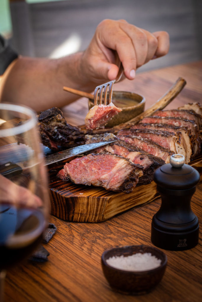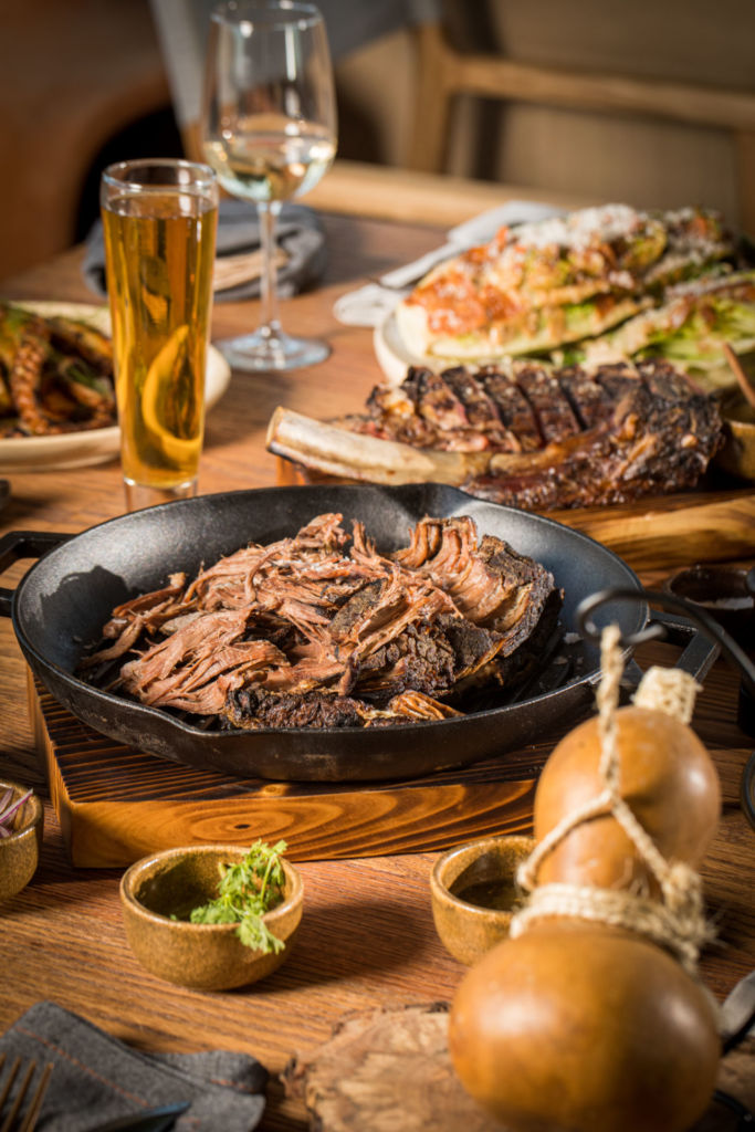 Este último se sirve para grupos de cuatro personas en adelante ya que el concepto se basa en cocina de campo a las brasas ideal para compartir, en la cual se sirven piezas como la picaña directamente en la mesa con una pala, vegetales rostizados, arroz salvaje, mariscos a las brasas de pesca sustentable, ensaladas con vegetales del huerto y más. Esto en compañía de un maridaje con los vinos de su bodega, la cual se encuentra dentro de la propiedad; lo mejor es que todo esto se sirve en las mesas compartidas con vista al lago y a los viñedos.