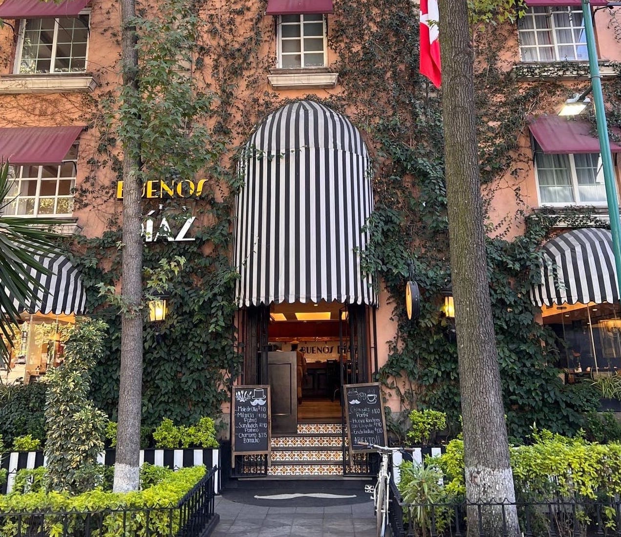 Buenos Díaz Cafetería, –sí, con ‘z’–, es uno de esos restaurantes en CDMX para ir con los abuelos y sorprenderlos con un viaje al pasado. Se ubica dentro del histórico Hotel Geneve, en la Zona Rosa. Está inspirado en el lado luminoso del Porfiriato y recrea la atmósfera de inicios del siglo XX con vitrales antiguos, fotos del México de antaño y hasta meseros vestidos como organilleros. Todo aquí despierta nostalgia y seguro les traerá buenos recuerdos a tus abuelos, mientras disfrutan de un desayuno delicioso. Las opciones van desde unos chilaquiles con suadero hasta tamales oaxaqueños, molletes o huevos al gusto. Si van a la hora de la comida, encontrarán clásicos como sopa de tortilla, arrachera, enchiladas o camarones al mojo de ajo. Un sitio lleno de detalles originales, ideal para compartir sobremesas largas, platicar y consentir a la familia.