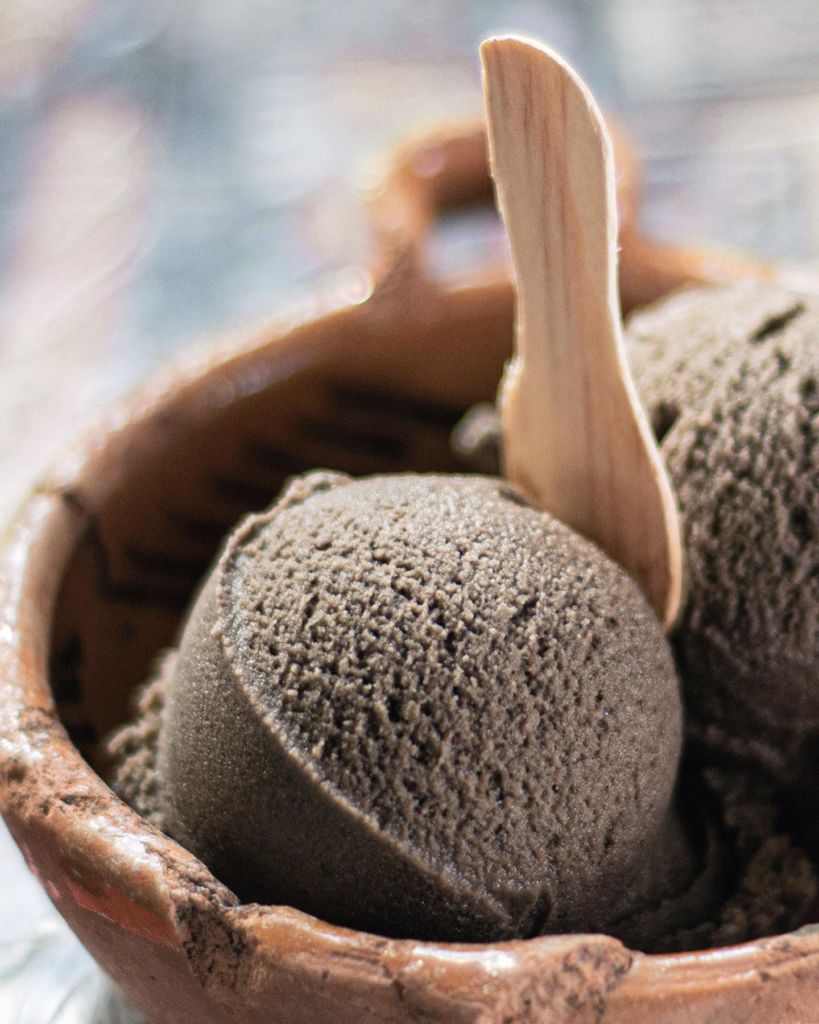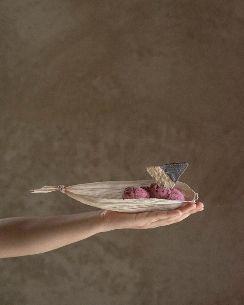 Otro proyecto increíble que se enfoca en el maíz es ‘Coyotitla’, de la misma familia de Milli este lugar se especializa en heladería a base de maíz de diferentes variedades y por temporada, también cuenta con nieves a base de licores locales como el Tecuin —con hierba de monte, fruta de temporada y aguardiente—, pulque y mezcal. El helado que más pide la gente y que nos sorprendió, fue el de maíz azul tostado que se llama ‘maíz carbón’; maíz cacahuazintle con amaranto, maíz rojo, maíz amarillo con naranja y maíz con café. También puedes encontrar gelatinas de maíz azul, paletas y malteadas. Todos los helados se sirven en hojas de maíz y el ‘totopo dulce’ que acompaña a los helados es elaborado por Mazolco Azul, que es una empresa que vende derivados del maíz como tostadas, totopos y nachos de maíz azul, amarillo y rojo y también hacen las mezclas entre colores.
