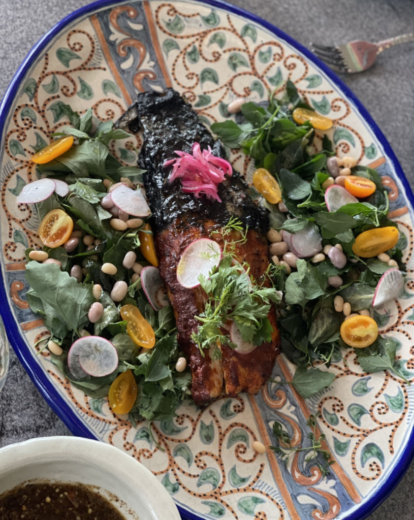 Este restaurante no es oaxaqueño, ni poblano, es una mezcla de las experiencias del chef Alex Ruiz por sus cocinas preferidas, las cuales se complementan con platos e ingredientes de Puebla. Aquí se vienen a compartir y pasarla bien, sin nada de bluff. Lo que se busca es tener mesas llenas de comida que reconforte y que una a todos al festejo. Un enorme pescado a la talla con recado para taquear, lechón con una costra crujiente y ceviches servidos en molcajetes que te hacen salivar, así es la cocina de Agualumbre.