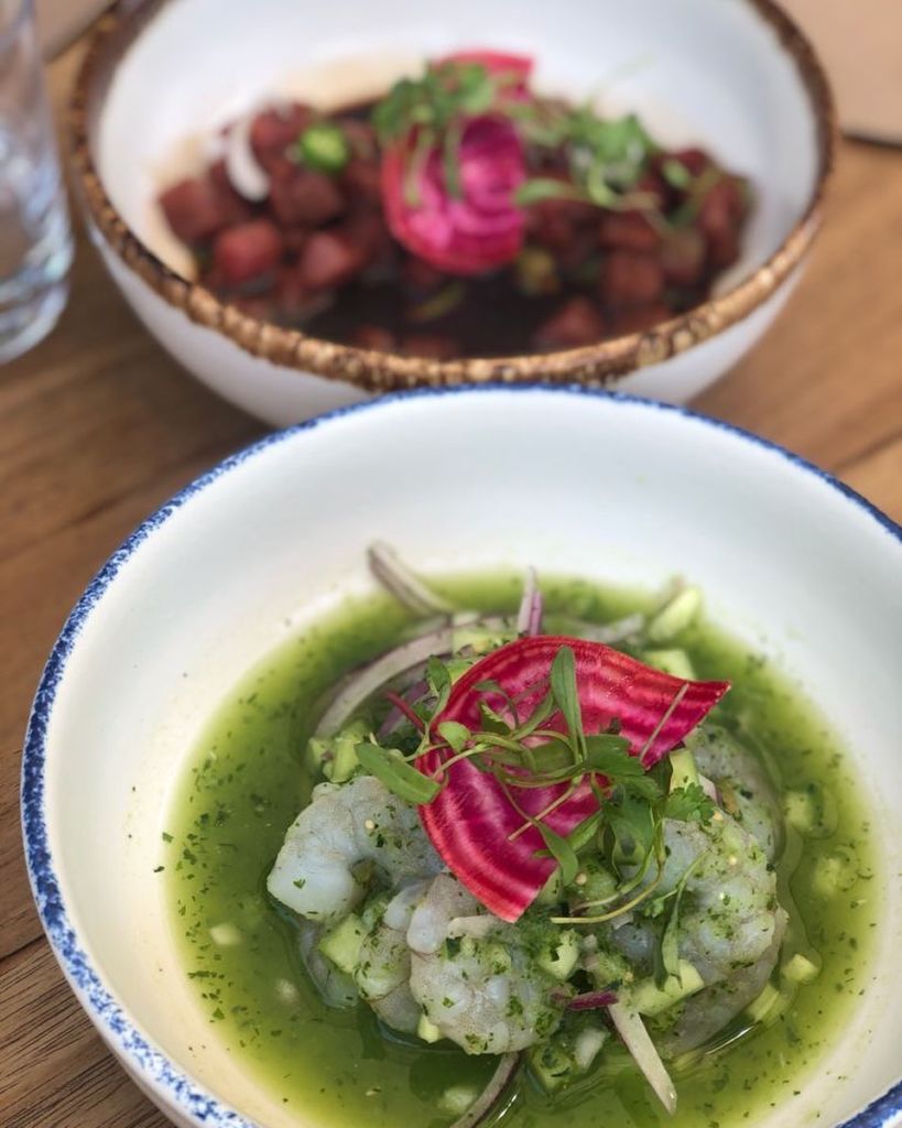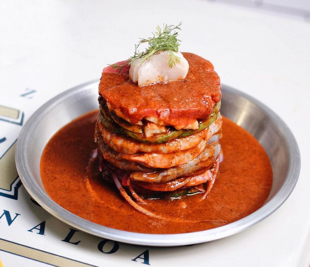 Si te gustan los mariscos frescos y en sus versiones clásicas sonorenses, entonces tienes que visitar Mi Compa Chava. A cargo del chef Salvador Orozco, nació como una dark kitchen de productos frescos de mar hasta conseguir un espacio físico en la Roma – ¡establecido dentro de una antigua fábrica de puros! -. Aquí podrás probar una de las mejores torres de mariscos en la CDMX: ‘La Señora Torres‘, elaborada con láminas de atún aleta amarilla de Zihuatanejo, pulpo de Campeche, camarón crudo y cocido que llega de Sinaloa, callo de hacha de Sonora, aguacate y pepino y si eres de gustos más exóticos, la Cheve Chola Levantamuertos, servida con pulpo y camarón.