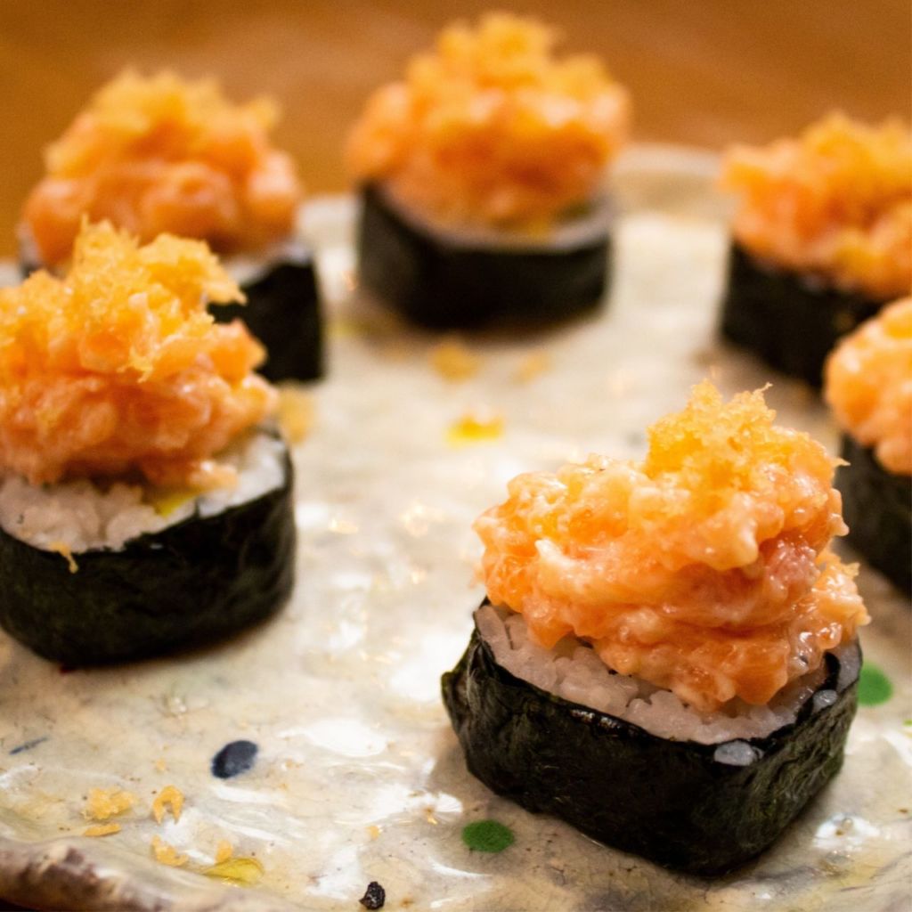Otro de los restaurantes para comer sushi con tu pareja es Madai. Esta pequeña barra se especializa en rollos con técnica japonesa tradicional y experiencias omakase. Su decoración te hará sentir en un izakaya tradicional. Además de su gran variedad de rollos como el de jaiba suave y el de salmón picante con trufa, tiene una barra de ramen y platillos de autor como los fideos de pesto con erizo.
