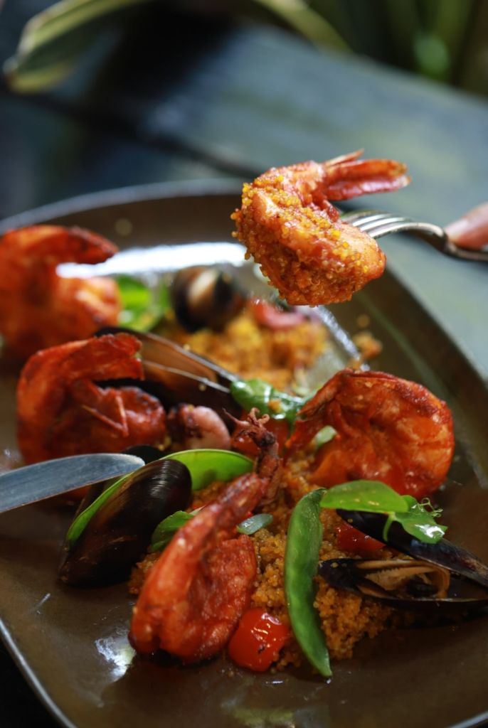En la parte del menú encontrarás platos perfectos para compartir como el Rib Eye con vegetales rostizados, los camarones zarandeados con piñas asada y rábano sandia, la paella de quinoa blanca con mejillones y camarones salvajes de pesca sustentable y las hamburguesas; destacando la de Pulled Pork y la de medallón de atún por su originalidad.