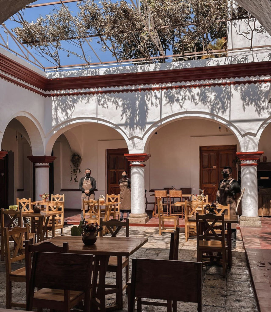 Sin duda, uno de los restaurantes oaxaqueños más importantes de la escena culinaria son Los Danzantes. Este espacio lleno de tradición hace honor a la tierra, a su gente y a los productos de temporada servidos de una manera excepcional como la clásica hoja santa con quesillo y miltomate de chile meco o las croquetas de tempura de huitlacoche con mole amarillito. Además este espacio cuenta con una terraza que te permite disfrutar los soleados días llenos de música y sabor a zandunga.