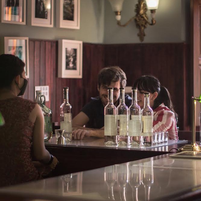 Para conocer Oaxaca es necesario beber el elixir de los dioses, ‘el mezcal’. Esta bebida tan representativa debía tener su espacio personal, es por eso que La Mezcaloteca creó un acogedor bar con etiquetas que muestran el origen y tradición de cada sorbo que se bebe de este destilado. Aquí las etiquetas te desglosan el origen del mezcal, desde la zona de cosecha, hasta el maestro mezcalero que le dio vida, además de tener variedades muy particulares que solo podrás probar ahí.
