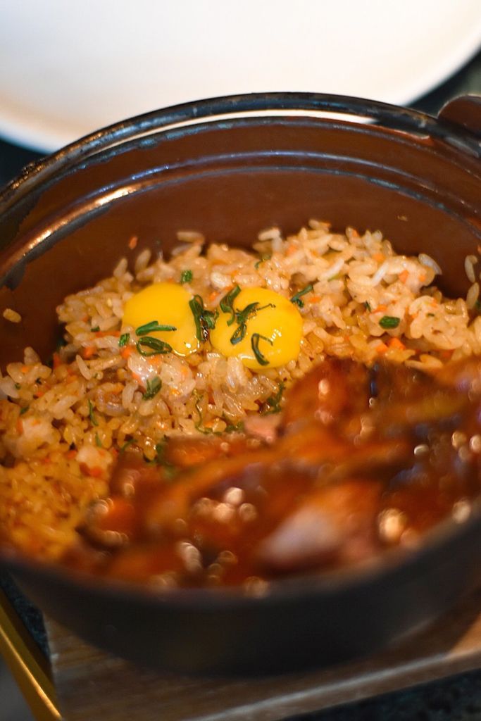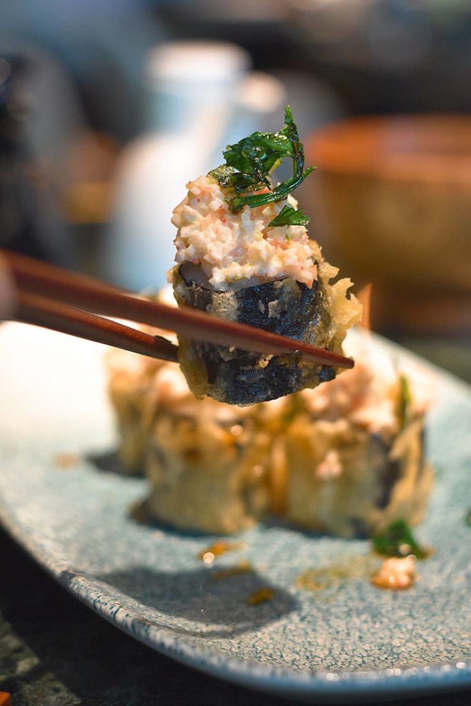 Al entrar al lugar, te asombrarás con su barra de sushi y robata, en donde podrás vivir una experiencia única al ver cómo preparan tus alimentos justo frente a ti. Si lo prefieres, puedes sentarte en uno de sus cómodos gabinetes con cojines para que te sientas como en casa. Sin importar el lugar que elijas, tendrás garantizado un espacio acogedor y chill pero sofisticado al mismo tiempo, en donde elementos como plantas y luces cálidas son protagonistas.