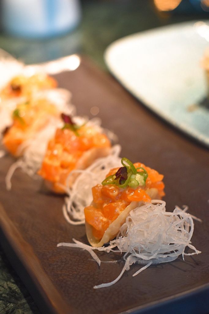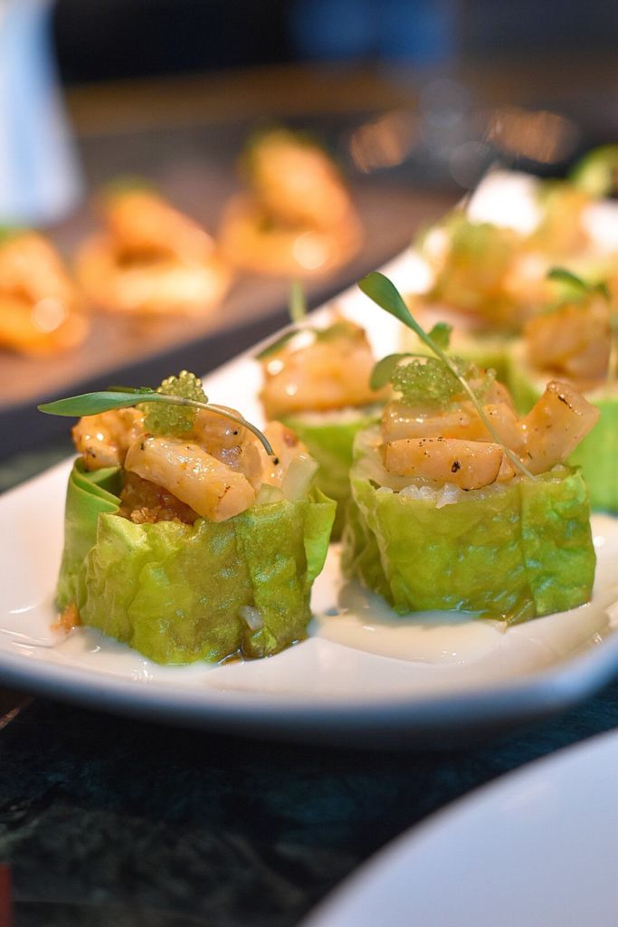 Durante tu visita, te recomendamos que inicies con unos Crispy Tacos de salmón con aceite de trufa y con unas gyozas de rib eye marinado en salsa yuzu, con un toque de jengibre, ajo y cebollín. Si prefieres una opción más fresca, la elección perfecta será su tostada de wonton con callo de hacha marinado en salsa de maracuyá, con mango, aguacate y ponzu.