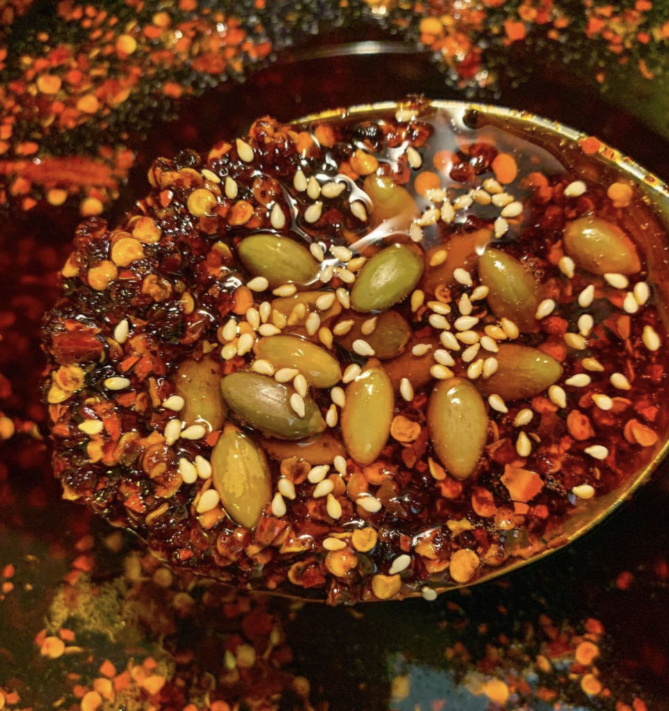 Esta salsa macha se elabora con una base de chile serrano, habanero y jalapeño con un mix de nueces, cacahuates, pistache, albahaca, perejil, cilantro y aceite de oliva. Creando una salsa suave y untable con el picor ideal para acompañar carnes, pescados y antojitos mexicanos. En su lista de salsa también se encuentra la tradicional salsa macha, pero te recomendamos arriesgarte y probar esta versión verde que te sorprenderá.