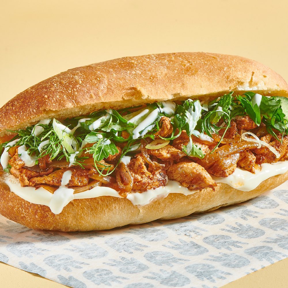 Cabe destacar que gran parte de los ingredientes en esta dark kitchen de sándwiches a domicilio en la CDMX se hacen en casa, desde su pan artesanal horneado todos los días y sus galletas crujientes, hasta sus salsas y su pastrami curado. Hay sándwiches largos –muy al estilo Subway–, como su sándwich de pollo parmesano –en pan italiano con milanesa de pechuga de pollo con parmesano, salsa pomodoro, mozzarella, pesto de albahaca y pimienta negra– o su sándwich Saigón Tel Aviv –en pan italiano con mayonesa, pollo salteado con cebolla caramelizada y mix de hierbas con pepino–.