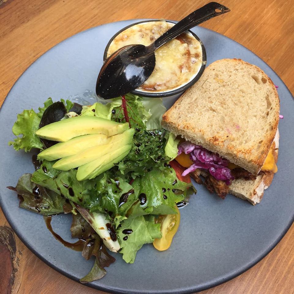 PETIT ROQUEFORT– Sándwich de pulled pork con mini sopa de cebolla