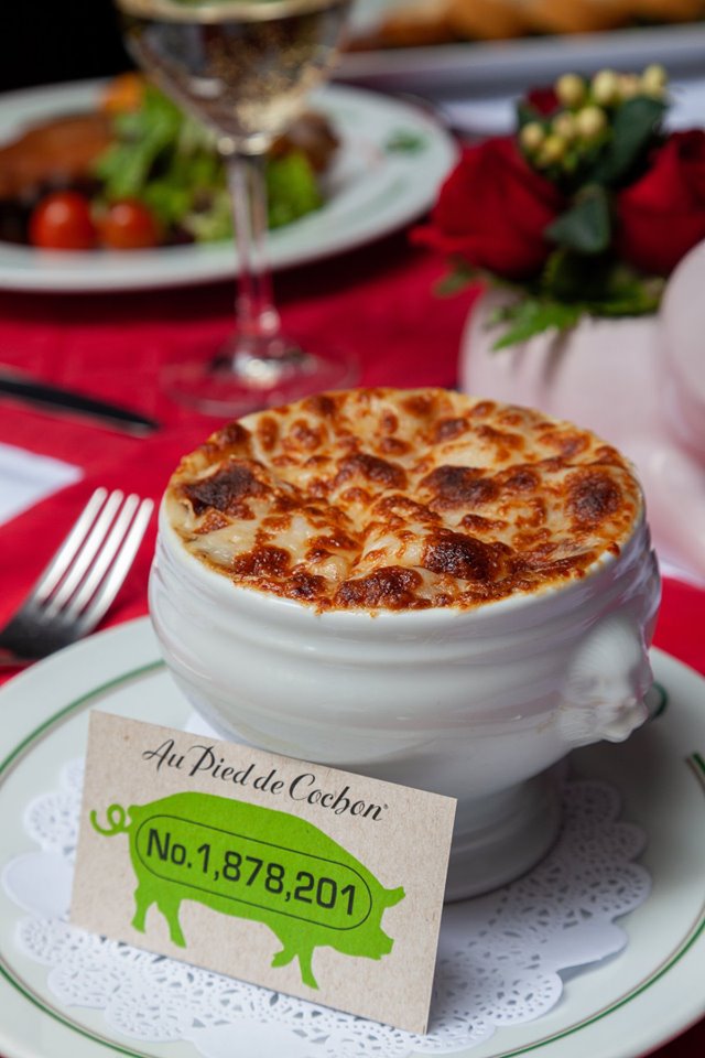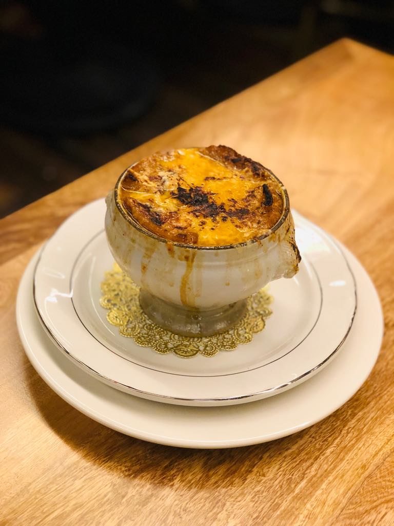 Te enamorarás al disfrutar de una excepcional sopa de cebolla gratinada con queso gruyère y parmesano reggiano. Su sabor concentrado a cebolla, su temperatura perfecta y el delicioso sabor de sus quesos convierten a este plato en el imperdible durante tu visita.