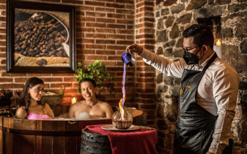 Spa Caliche es un espacio para la meditación y relajación, es por eso que también cuenta con camas de paja, las cuales puedes utilizar para alinear la columna y quitar diversas afecciones de la espalda. Para disfrutarlo debes reservar por lo menos con un día de anticipación. El spa de chocolate dura aproximadamente 60 minutos en los cuales además de estar dentro de una enorme tina con agua infusionada en cacao, podrás tener una mascarilla de chocolate puro y un masaje de cara. Al finalizar disfrutarás de un snack de chocolate y una enorme malteada.