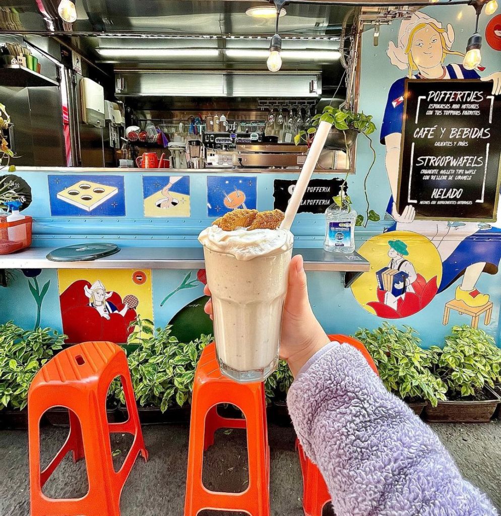 En su menú encontrarás deliciosos pofferstjes – pancakes holandeses servidos con toppings personalizados – y stroopwafles – galleta waffle rellena de un caramelo típico de los Países Bajos -. En caso de buscar una bebida dulce y refrescante, recomendamos pedir alguna de sus malteadas, hay de vainilla, fresa, stroopwafel, speculoos y chocolate vegano.