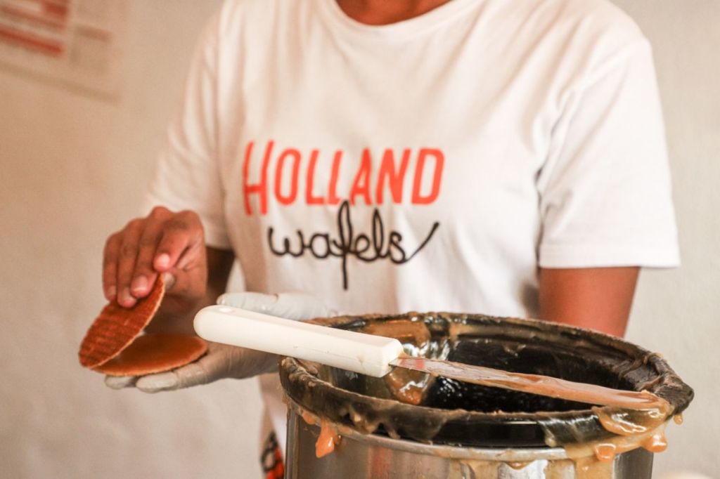 ¿Conoces los stroopwafels? Este postre estilo waffle se elabora con sirope y es un clásico holandés al cual también se le conoce como galletas de toffee o gofre y muy comúnmente se sirve encima de una taza de café para que el calor de este lo suavice y así el caramelo o sirope quede delicioso. Se cree que este postre se creó en 1784, cuando un cocinero que llevaba una pastelería tenía varios restos de galletas con sirope las cuales junto y así se nació este postre. Sin embargo, ahora es uno de los dulces callejeros más populares de Holanda. En México Holland Wafels fue el pionero en servir este delicado y popular postre.