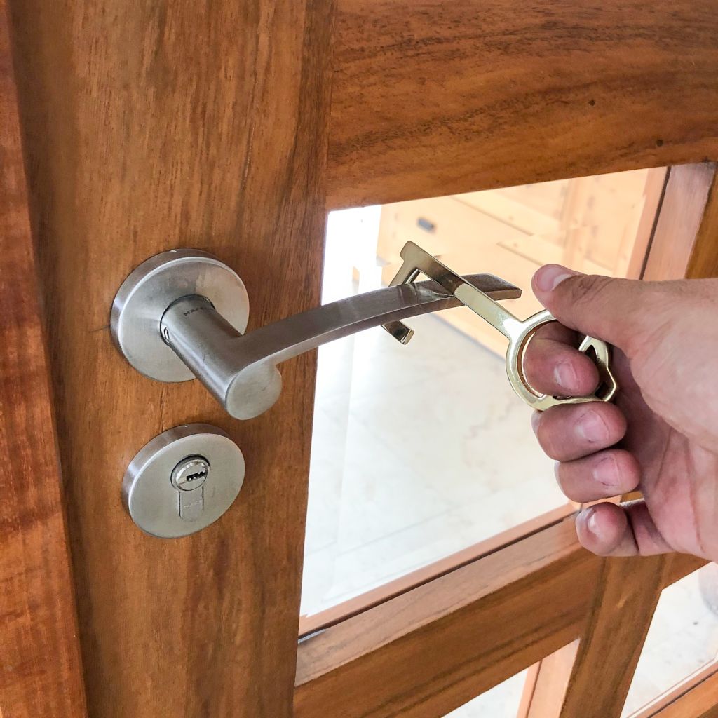 Su Sana llave sirve para ir al cajero automático y retirar dinero de forma segura; para abrir puertas y manipular manijas sin necesidad de tocarlas con las manos; para presionar timbres y botones de elevadores; o permanecer en casa y recoger tus pedidos, disminuyendo el contacto notablemente. Además, al estar hecha de latón, una aleación de zinc con cobre, tiene propiedades antibacterianas que la hacen segura de usar siempre, ya que elimina el 99.9% de las bacterias después de la exposición.
