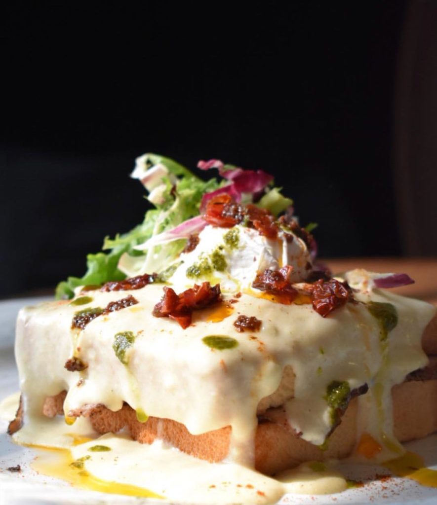 Si quieres disfrutar de un sunday-brunch en la CDMX rodeado de bellísimos escenarios arquitectónicos y con acceso a una de las terrazas al aire libre más exclusivas de Polanco, entonces tienes que visitar KYU. El restaurante, con sede principal en Miami y un admirable menú de cocina a la leña, ofrece un brunch especial los domingos. Éste introduce un notable toque japonés a los platillos más representativos del desayuno, resultando en un festín creativo que definitivamente vale la pena conocer. Te recomendamos probar el tocino ahumado con miel de schichimi, los huevos benedictinos con salsa de yuzu, o los ‘Korean Fried Chicken Chilaquiles‘. Te encantarán.