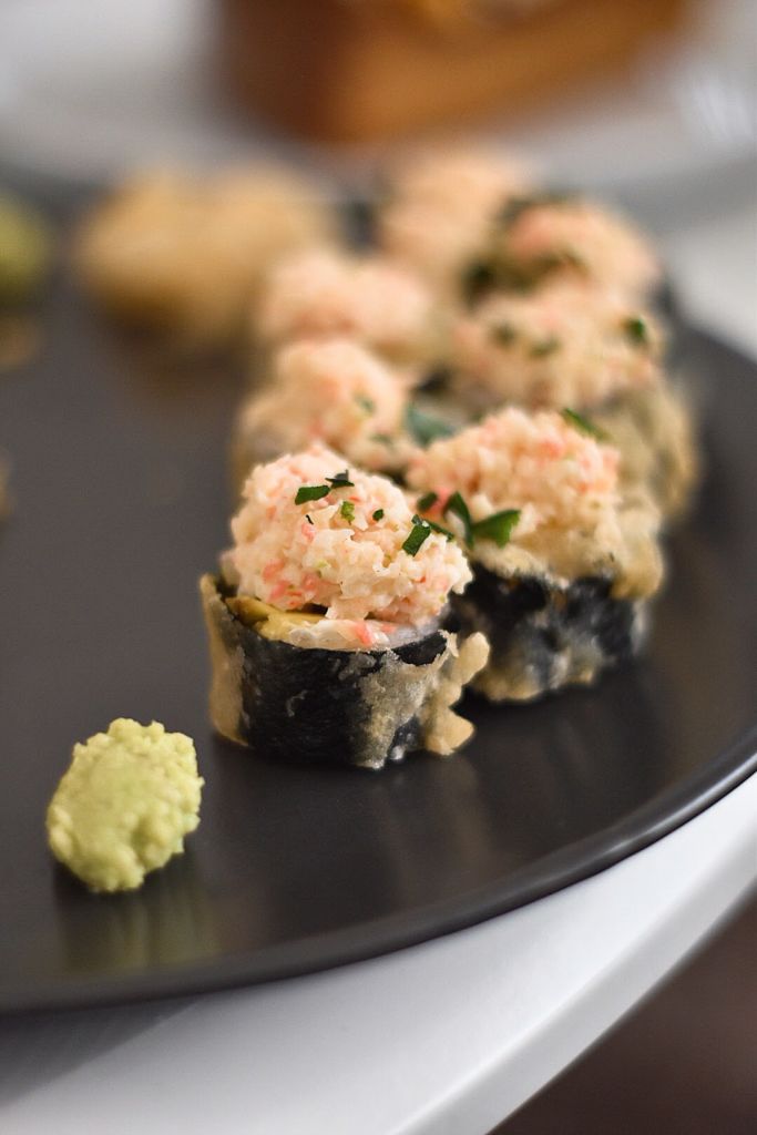 Un rollo con camarón tempura por dentro, aguacate y queso, tempurizado por fuera y terminado con tampico. Acompáñalo con unos shishito peppers marinados y la experiencia estará completa.