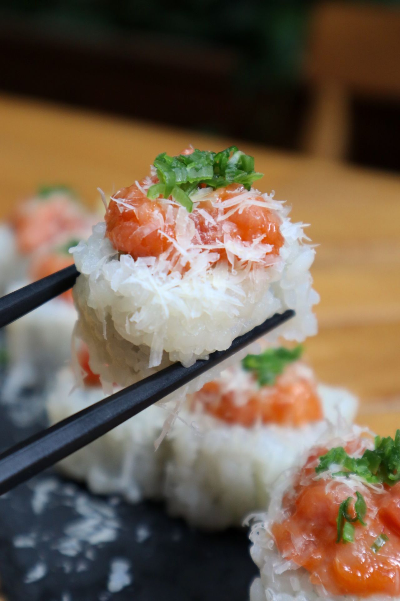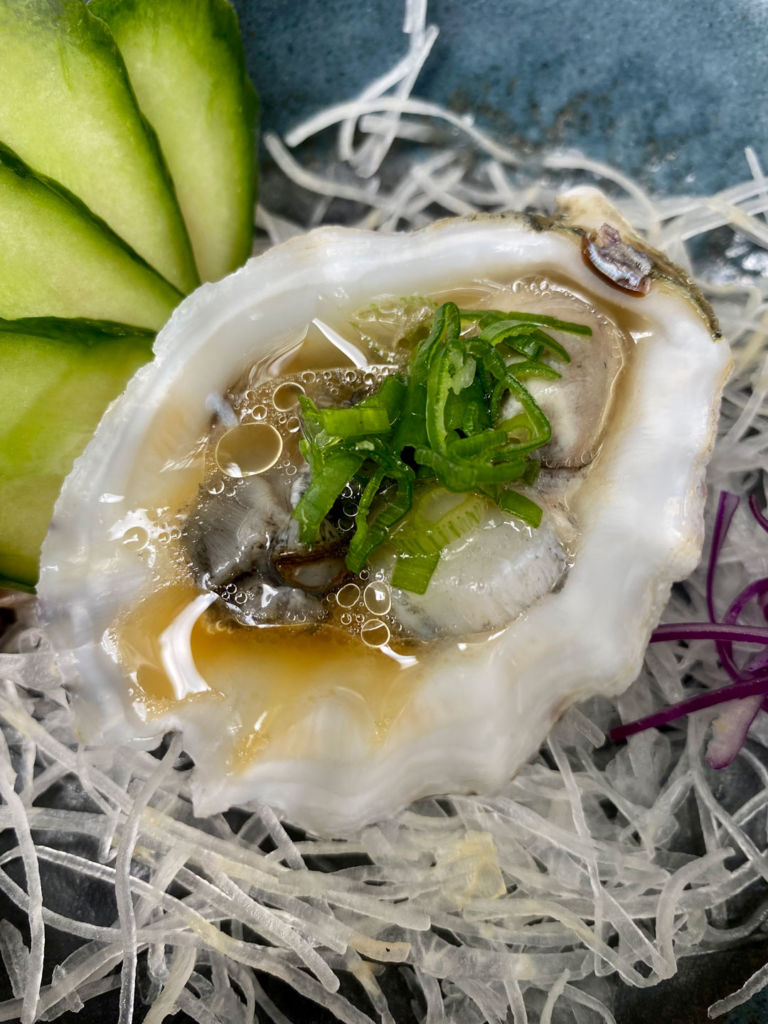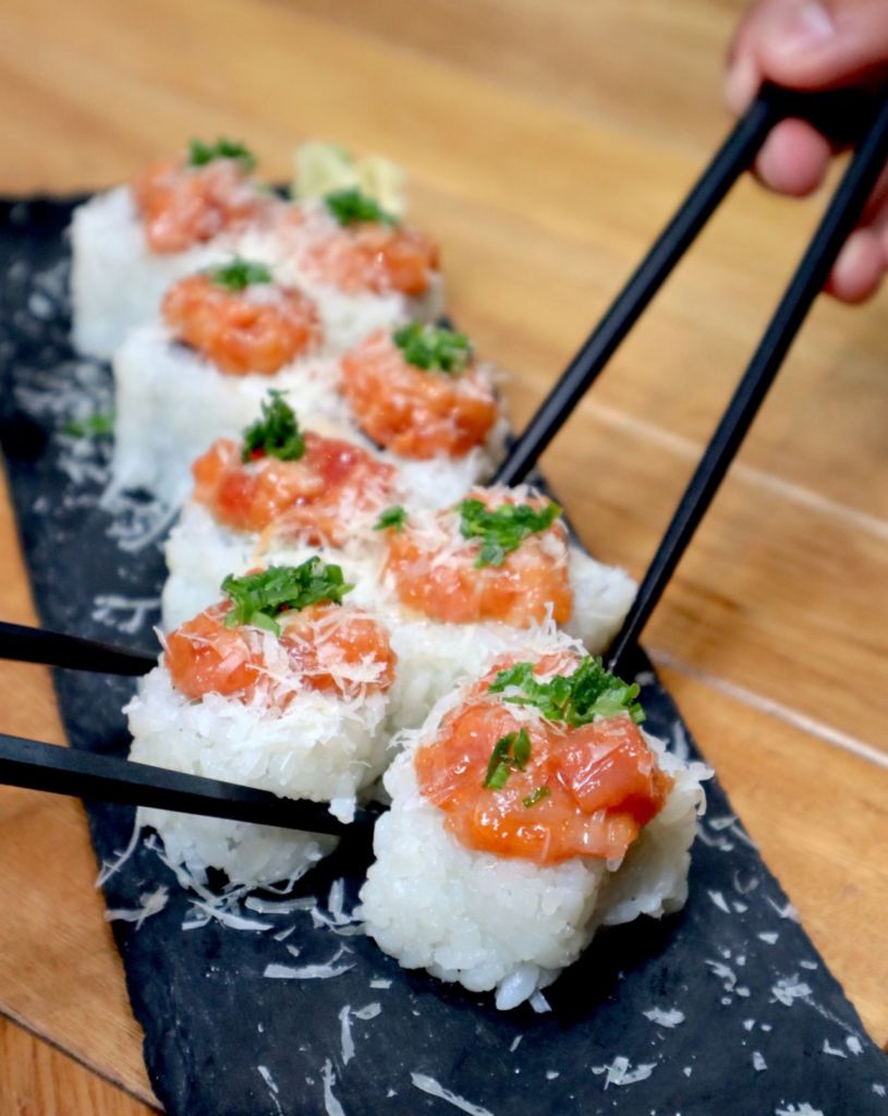 El rollo negitoro elaborado con toro, salsa sriracha, aceite de ajonjolí y parmesano es uno de los rollos estrella del lugar. También tienen un nigiri de erizo con trufa y ostiones frescos. Esta barra es perfecta para ir a disfrutar con tus amigos unos buenos tragos con sake, mientras disfrutas sus rollos, tostadas y especiales del mes. También tienen días de conchas, las cuales se sirven frescas con un sake bien frío.