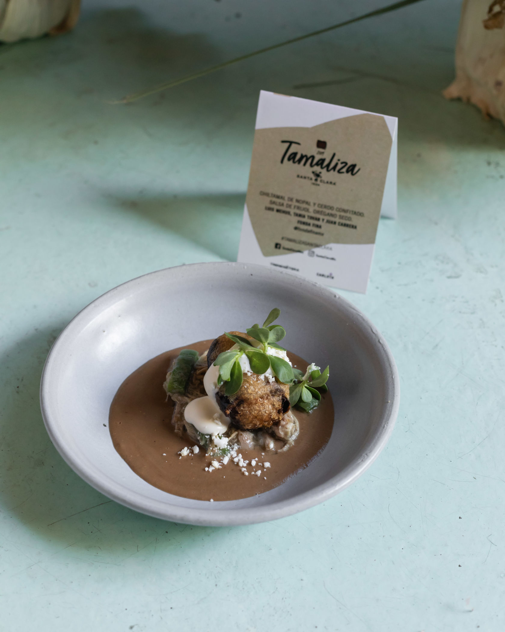 2do lugar: Fonda Fina – Chiltamal de nopal y cerdo confitado, salsa de frijol, orégano seco