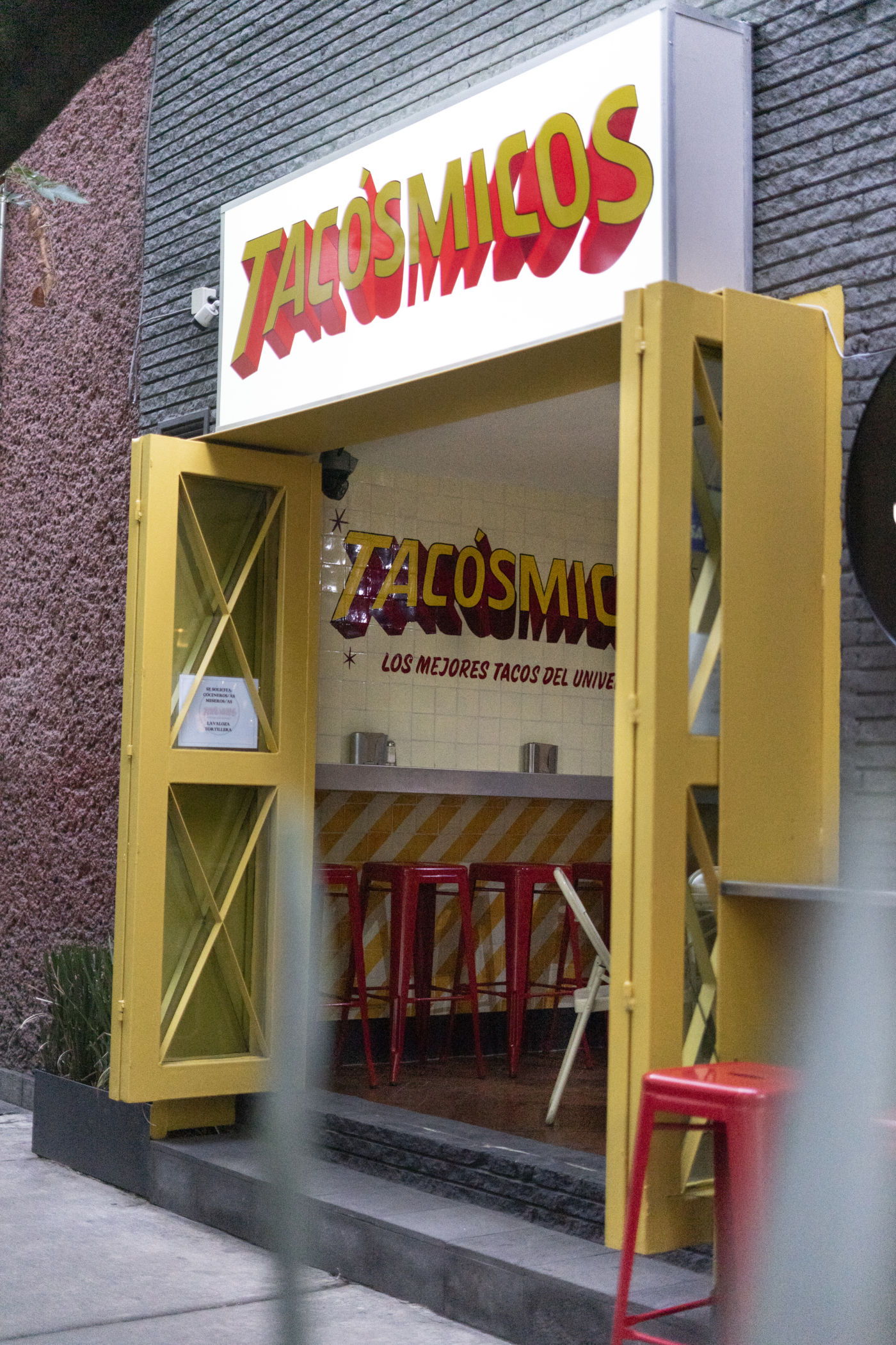 Si te consideras un fanático de los tacos – de todo tipo – debes saber que en pleno corazón de Coyoacán acaba de irrumpir un pequeño restaurante cuyo menú está dedicado 100% a enaltecer este platillo. Se trata de Tacósmicos, una taquería en Coyoacán, que conquistará tu paladar una vez que atravieses sus puertas amarillas y te dejes seducir por el exquisito olor de la carne y otros ingredientes que la acompañan.