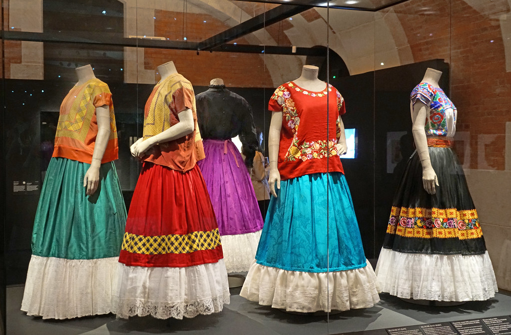Frida Kahlo fue una de las grandes promotoras del arte popular y la cultura mexicana en el siglo XX. La producción artística de Frida es profundamente introspectiva —no solamente autobiográfica— en el que la identidad de las cosas se desborda en cada elemento: los gestos, los colores, los paisajes, los atributos. A lo largo de su vida, Frida Kahlo construyó una imagen propia que proyectaba sus mundos interiores y sus ideales, pero sobre todo, que reconocía que ella misma era un producto de su entorno, asumiendo su mexicanidad como parte inherente de su personalidad.