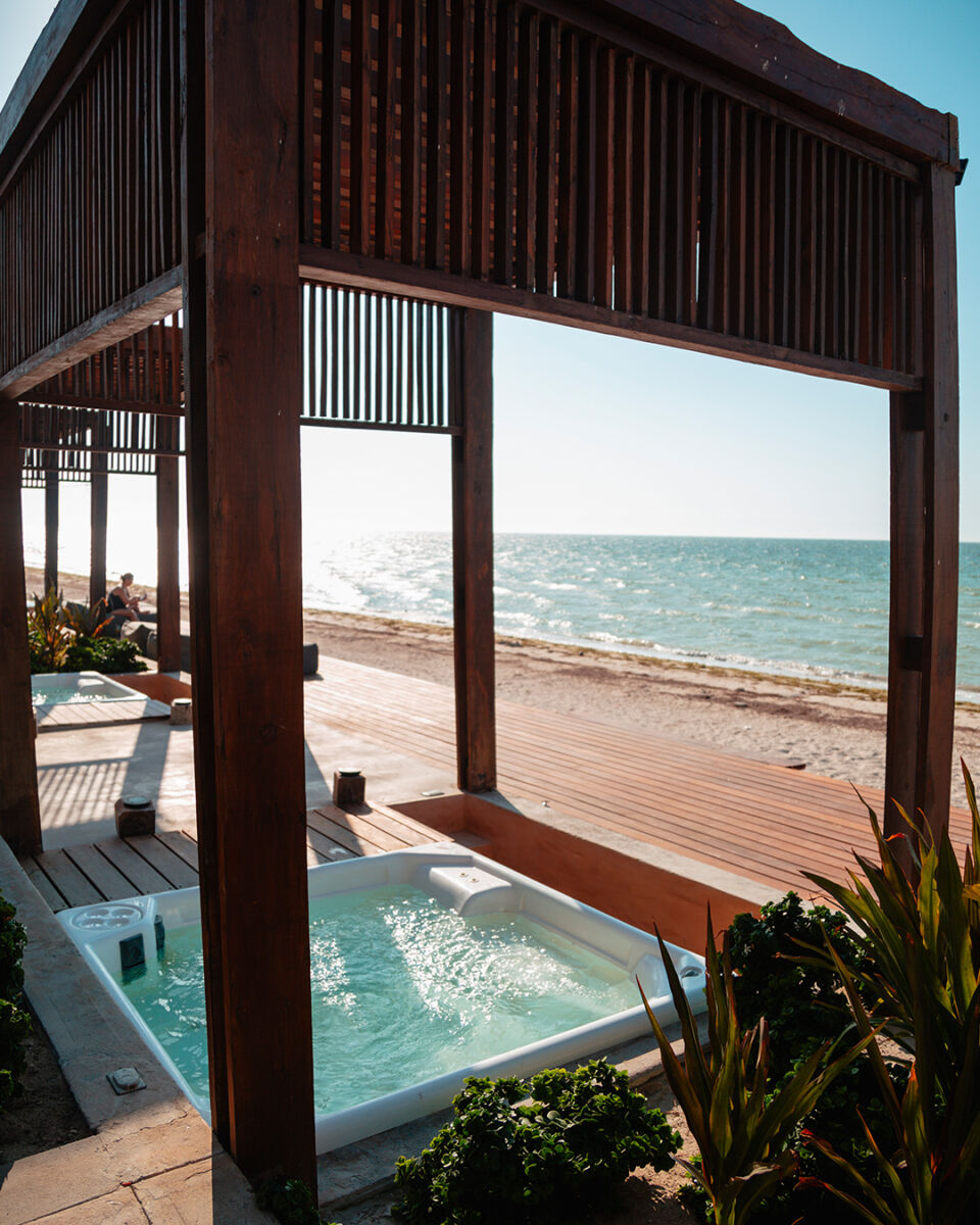 Si tu plan sí es pasar el día entre el mar y el camastro, pero quieres darle un upgrade sibarita a tu visita a Telchac, te recomendamos optar por Playa Viva, el club de playa del restaurante Amanecer. Desde camastros hasta hamacas que flotan sobre jacuzzis en la terraza frente al mar: aquí la experiencia es un verdadero agasajo. Tienen baños y vestidores, actividades acuáticas y un área de juegos para los más pequeños. Por supuesto, la gastronomía se inspira sobre todo en la cocina de mar, pero la carta va desde lo más fresco hasta lo más reconfortante. Por otro lado, también hay vinos y coctelería con un guiño tropical para gozar del calor.