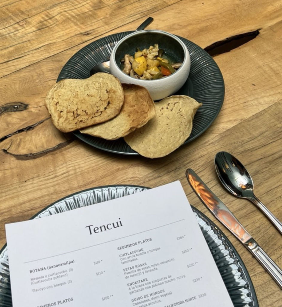 Este lugar es para los foodies valientes que buscan experiencias culinarias únicas, esos aventureros de paladar que esperan el elemento sorpresa en cada plato. Tencüi significa conectar en Náhuatl y es exactamente lo que Mario busca con sus creaciones. Su propuesta gastronómica basada en hongos abre las perspectiva que teníamos de la cocina con guisos de mezclas de hongos, bebidas con infusiones de hongos y hasta postres con este maravilloso ingredientes.