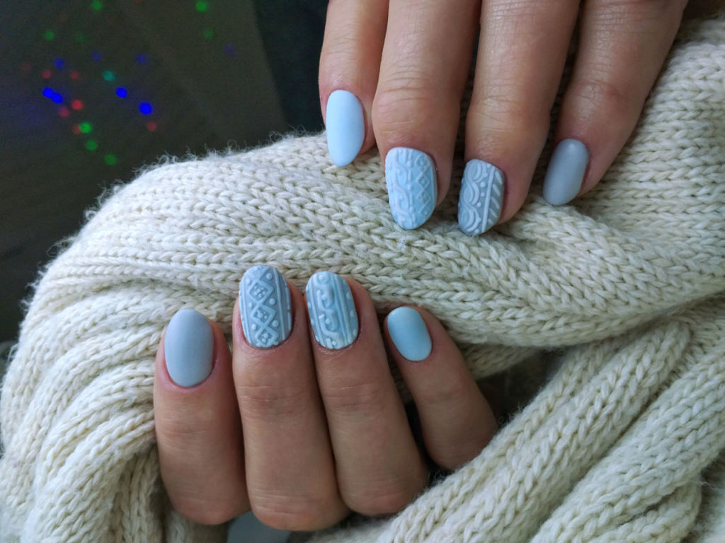 En tono azul, la gama de degradado es parte de la tendencia, ya sea que vaya de más oscuro a claro o viceversa. Además este tono tiene la misma función que el tono vino, ya que sirve como base para los diseños plata. Renos, cajas de regalo, esferas y Santa Claus, son parte de los diseños elaborados que están arrasando la temporada.