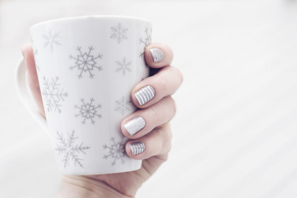 Las uñas rojas o color vino, traen en tendencia diseños en brillos plateados, atrás se quedaron los dorados que acompañaron el año pasado. Estos diseños hechos a mano pueden ir con tono plata liso o con brillos. El tono blanco es perfecto si te gustan los diseños arriesgados, ya que permite realizar todo tipo de dibujos y decoraciones. Entre los más populares están los adornos de navidad y los copos de nieve.
