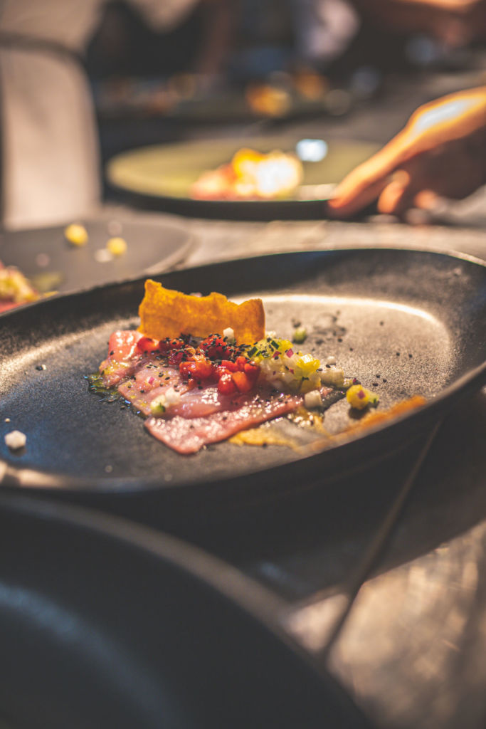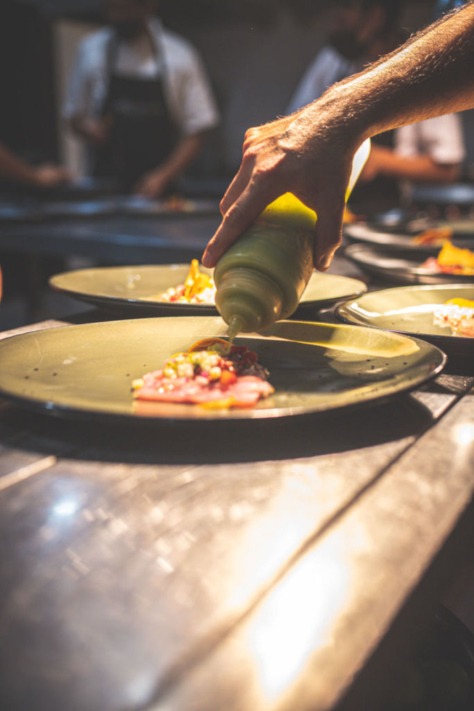 La línea de la cocina está ligada a la mixología y cocteles de la barra, para crear una experiencia integral.