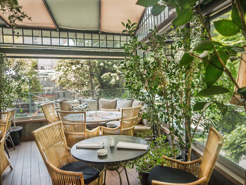 Al subir al segundo piso, te encontrarás con un entorno más privado, en donde una decoración refinada y elegante es la protagonista. Las sorpresas no acaban aquí, pues la mejor parte del restaurante se encuentra en el tercer piso; una hermosa terraza digna de fotografiarse, con árboles, vegetación por doquier y cómodos sillones con cojines que conforman un ambiente relajado, chic y extremadamente afrancesado.